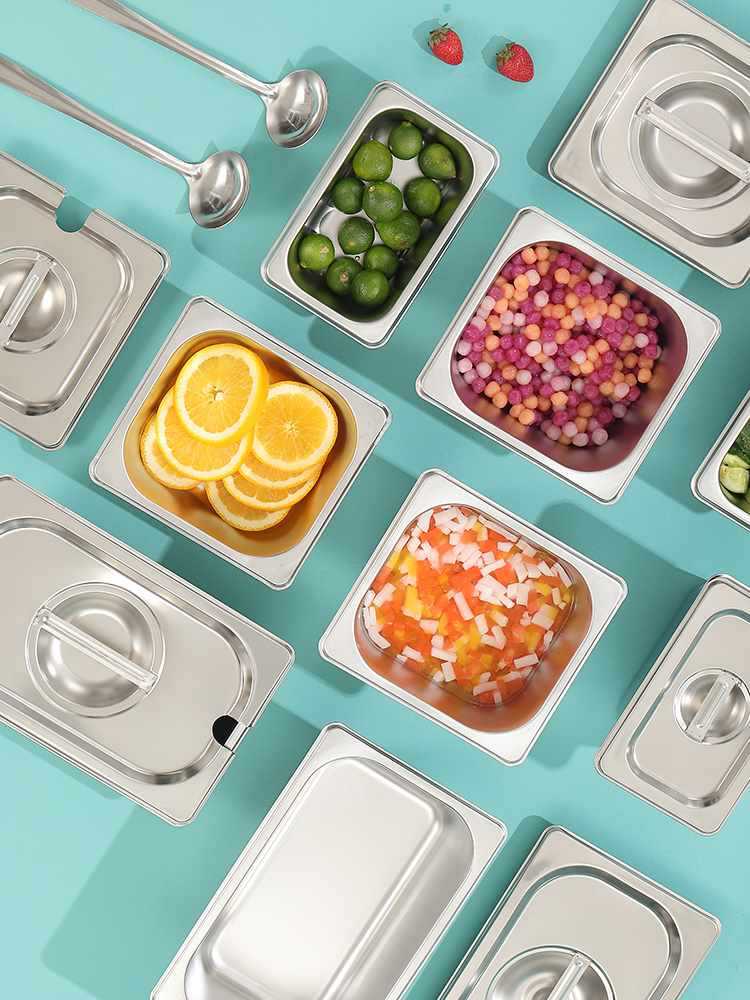 ♔ ステンレス鋼の分数ボックスミルクティーショップジャムボックス商業材料調味料ボックス食品グレードの份数ボックス蓋付き