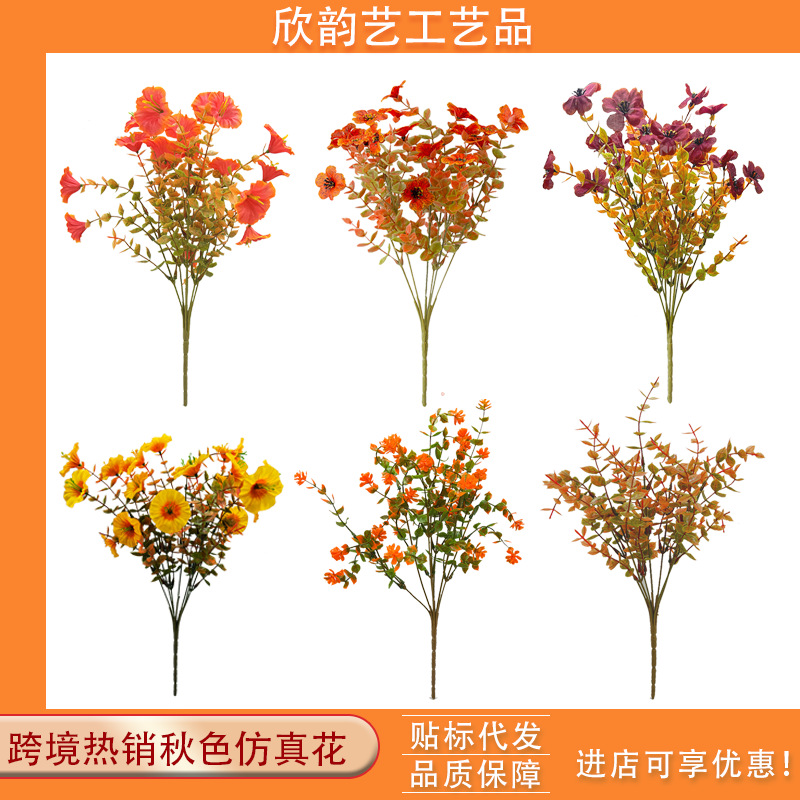 秋の色造花秋ユーカリバイオレット朝顔秋スタイル造花花束屋内屋外装飾