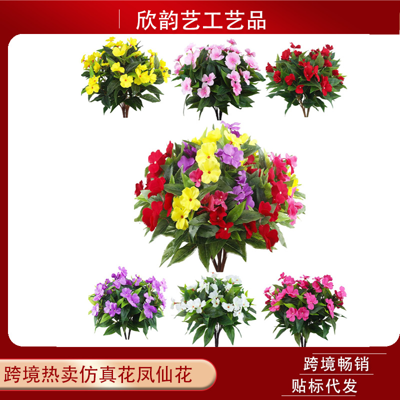 跨境热销仿真花凤仙花杜鹃花家居户外婚礼装饰插花摆件假花批发