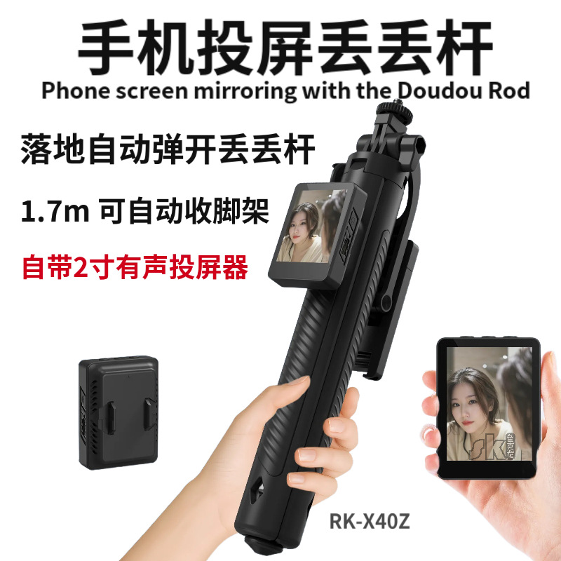 手机投屏自拍杆后置显示屏手机投屏器控制远程拍照蓝牙自拍丢丢杆