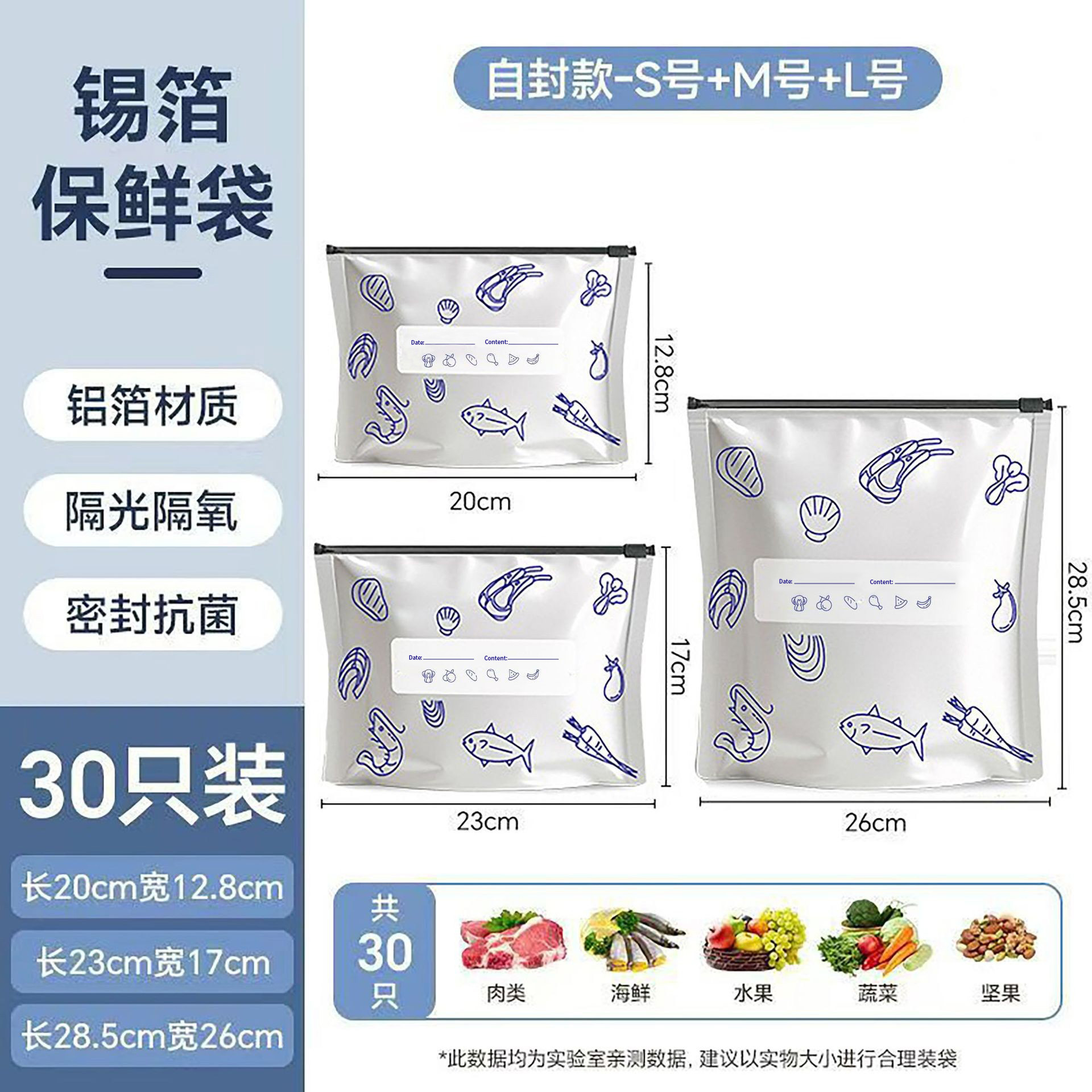 抗菌铝箔保鲜袋冰箱冷冻密封袋自封袋拉链式食品级封口分装袋