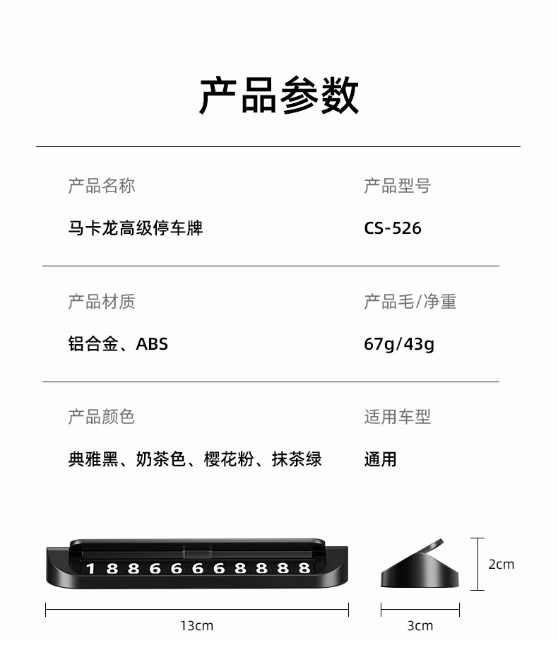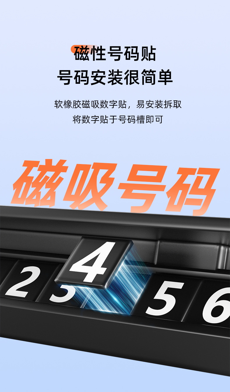 【产品清单】:停车牌*1个,磁吸号码贴*5组