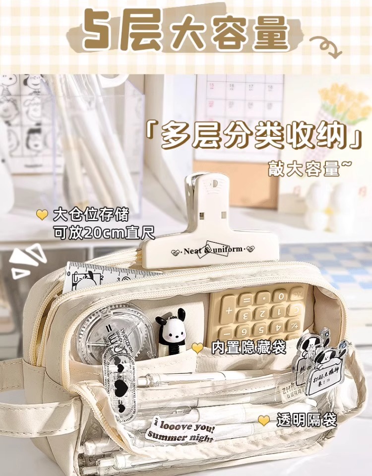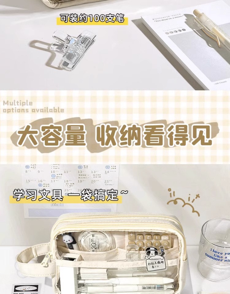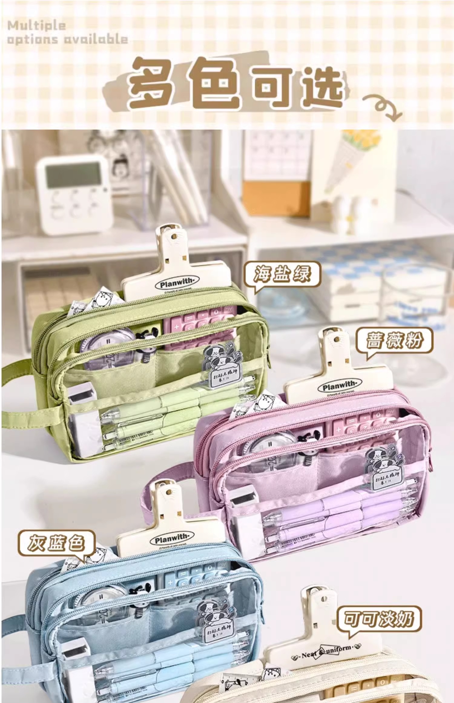 大容量透明筆袋 女子バージョン 2024年新中学生筆箱 高見えシンプル日本イン