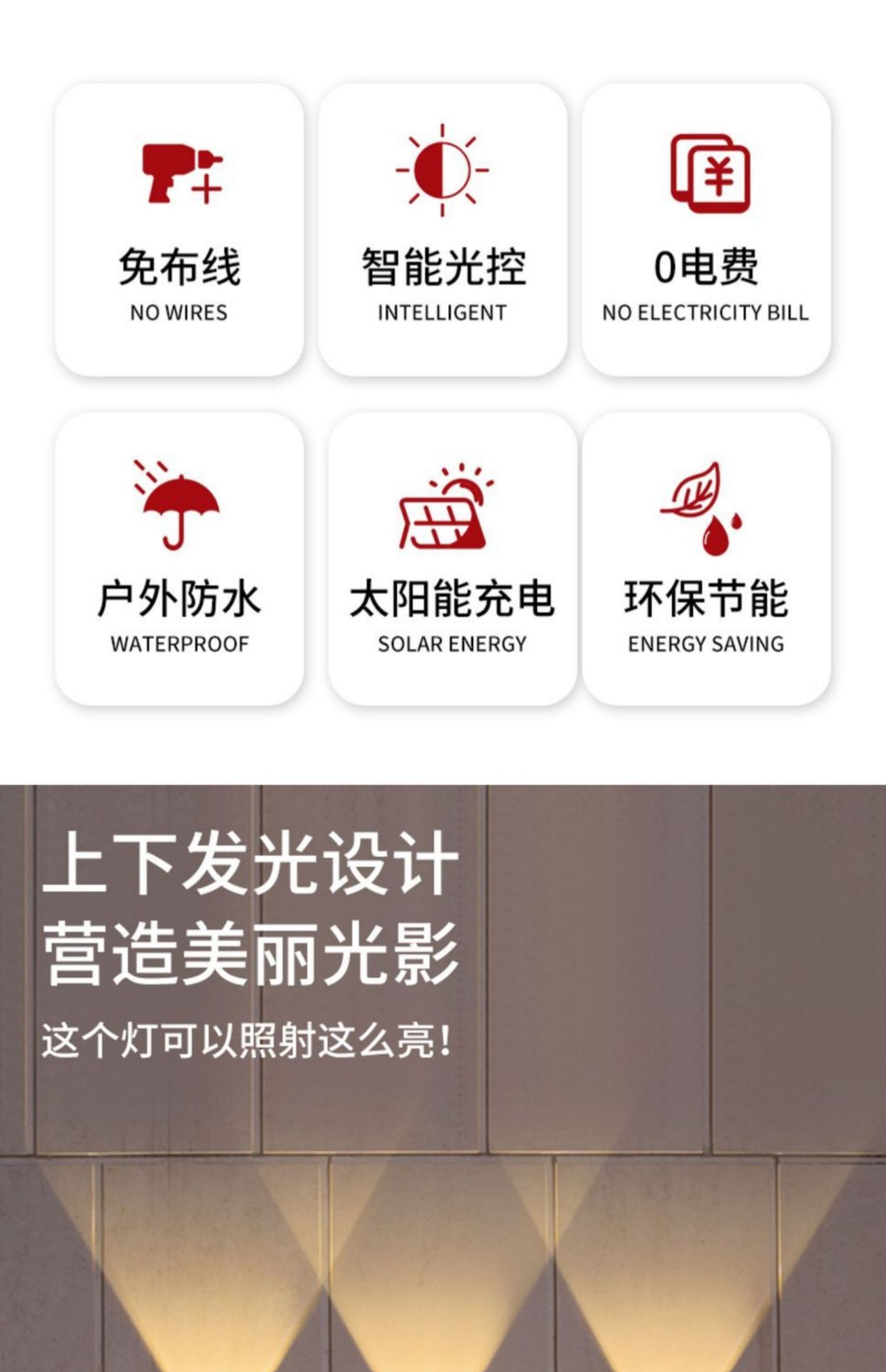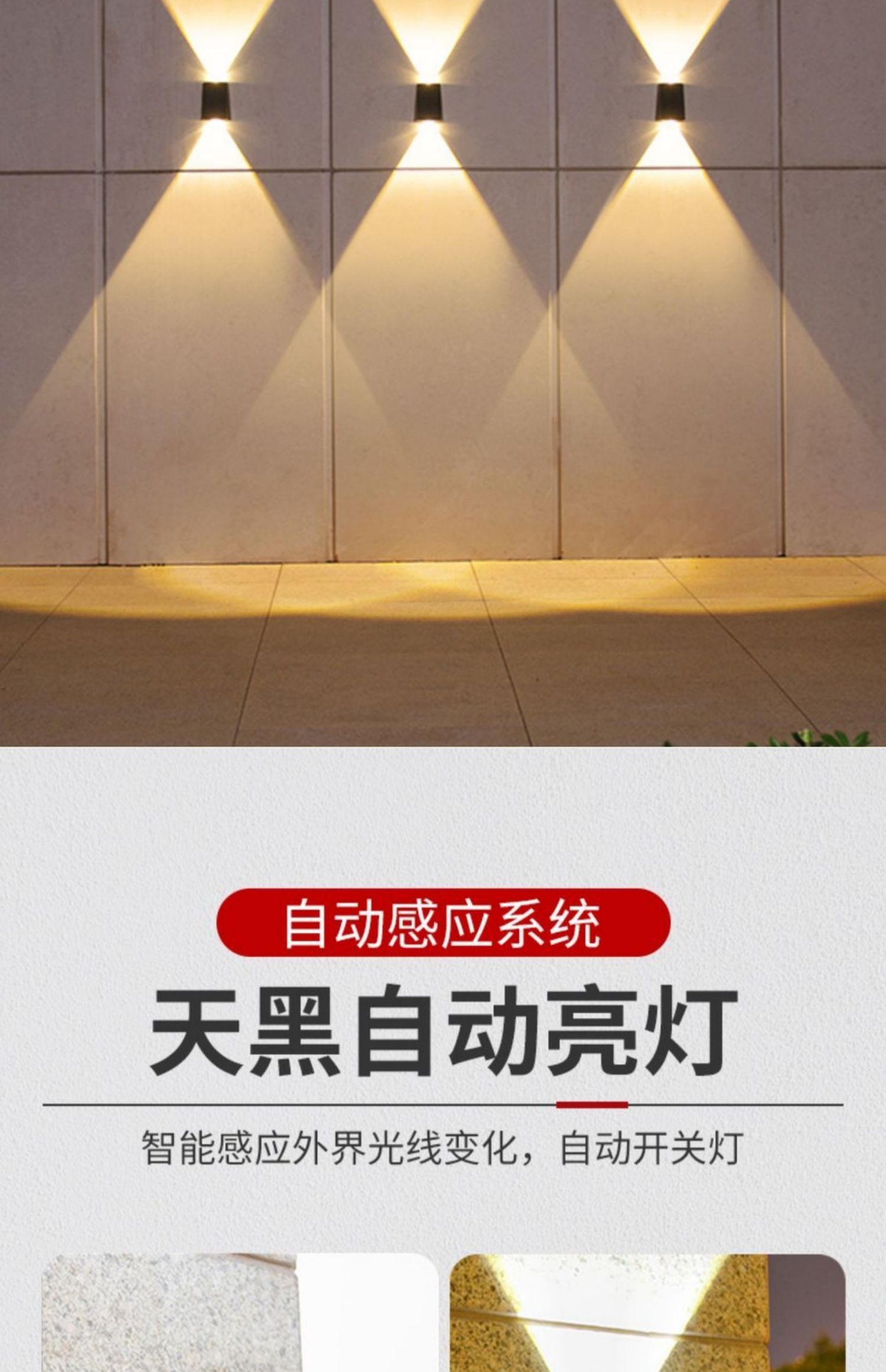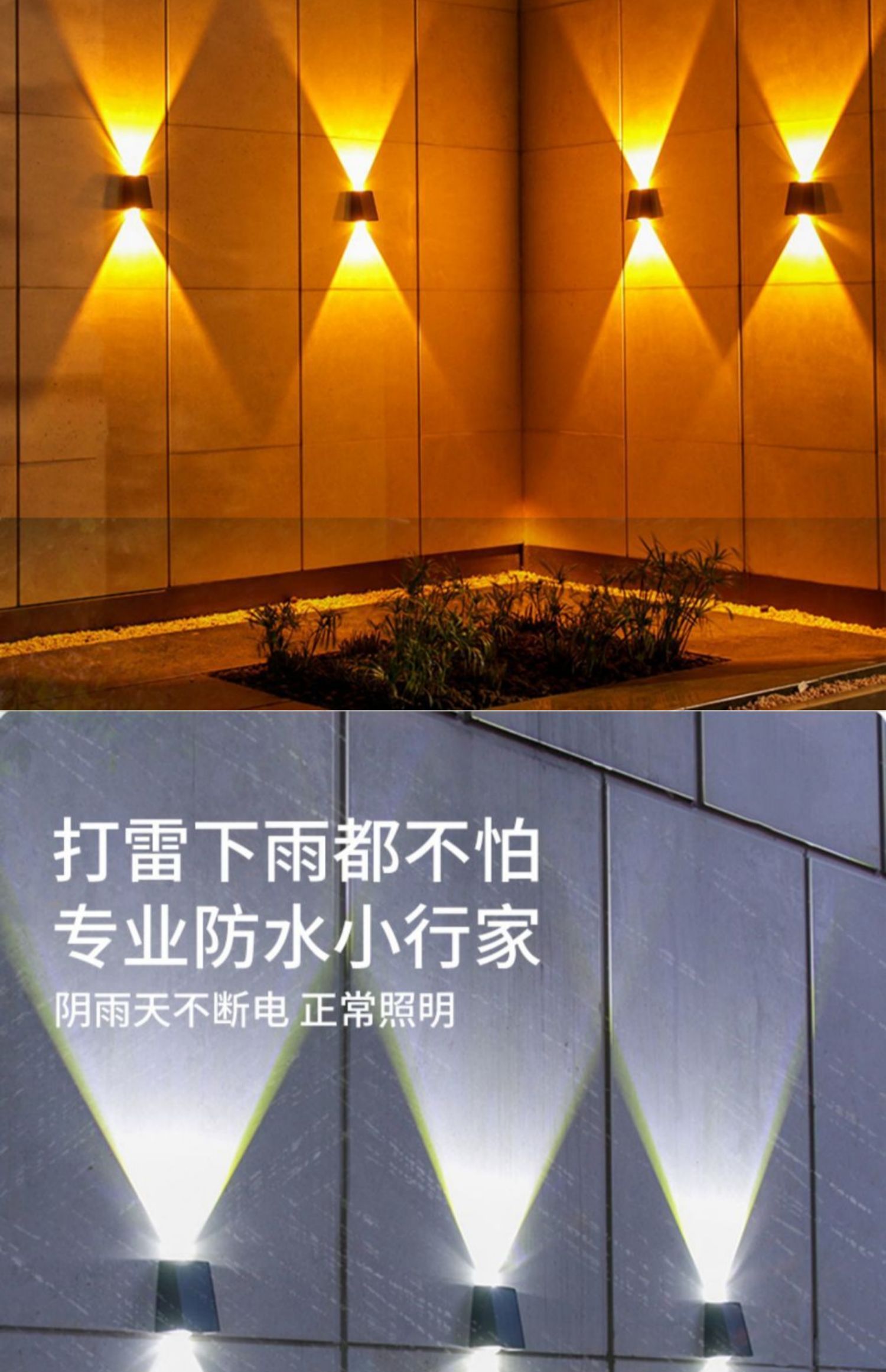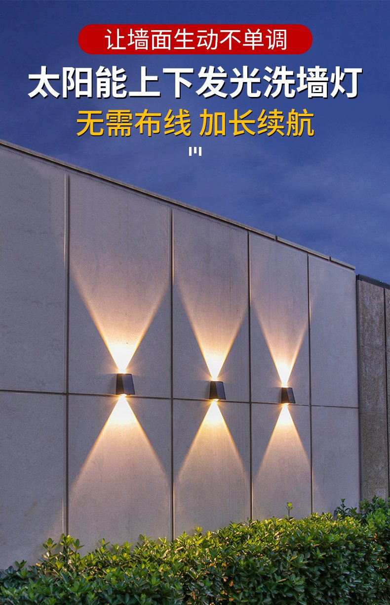 ホテルヴィラ外壁景観照明 新しいソーラーウォールウォッシャー屋外中庭ホームウォールランプガーデン雰囲気ランプ凸レンズ上下発光スポットライト外壁景観ランプ