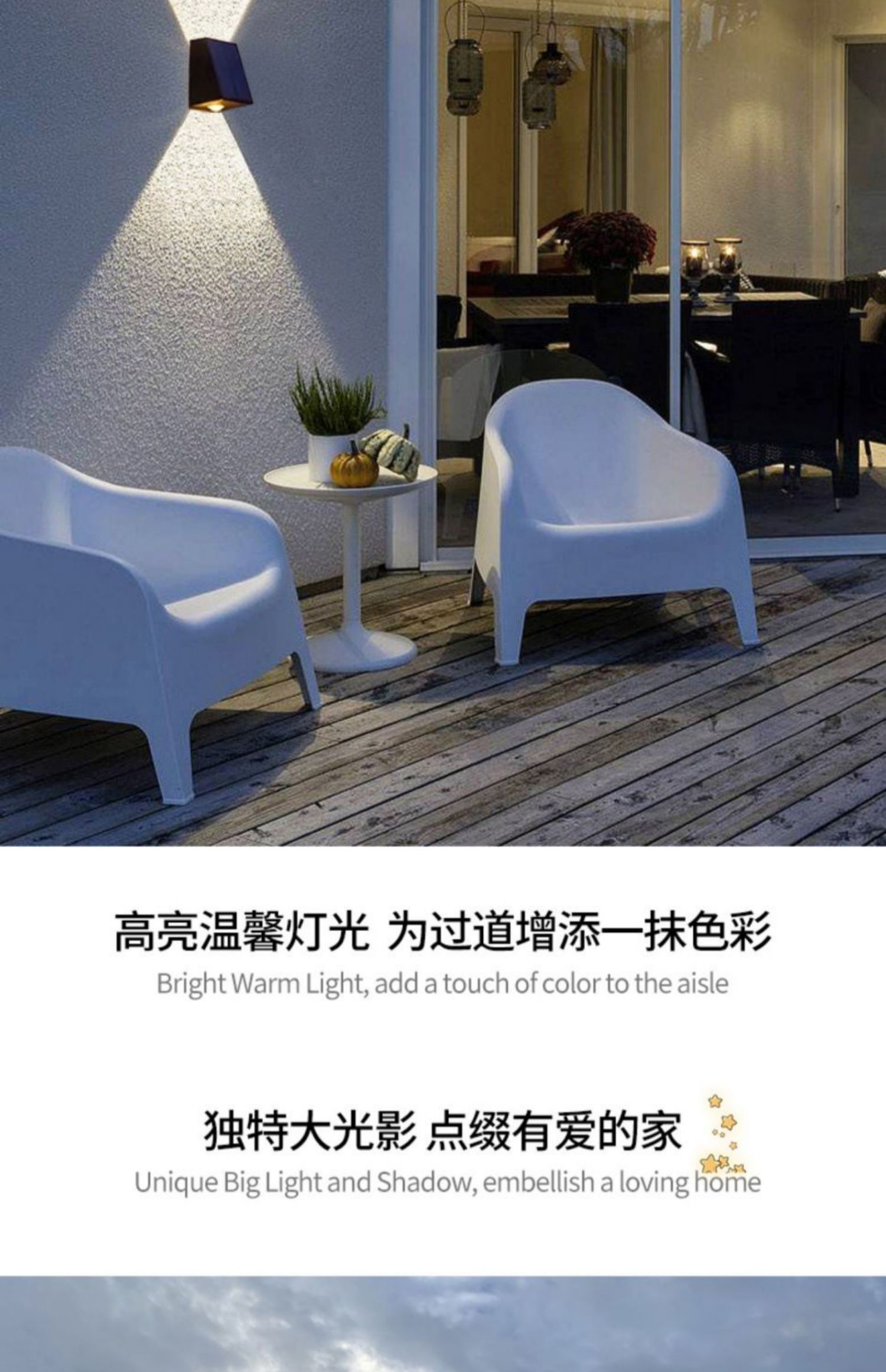 ホテルヴィラの外壁の雰囲気ライト 新しいアップグレードされたソーラーステップライト屋外フェンスライトガーデンパティオ装飾雰囲気ライトダブル上下LEDウォールライトホテルヴィラ外壁雰囲気ライト