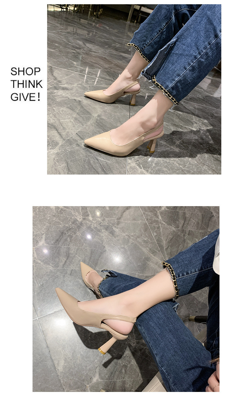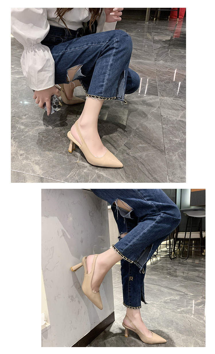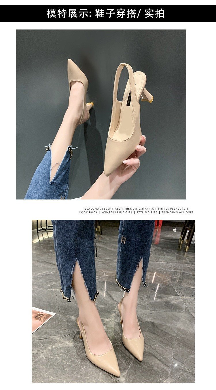 2025 春夏の新しいポインテッドトゥハイヒールの女性のスティレットヒール包頭サンダル空のバック浅い口のシングルシューズ女性のファッショナブルで多用途