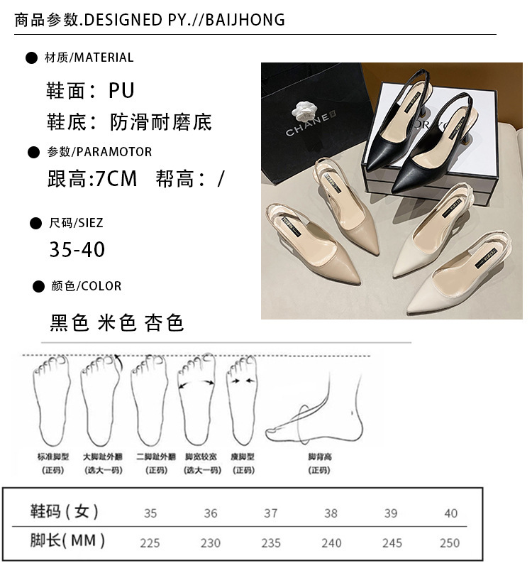 法式小香风高跟包头凉鞋女2025新款夏季细跟尖头套脚单鞋批发代发