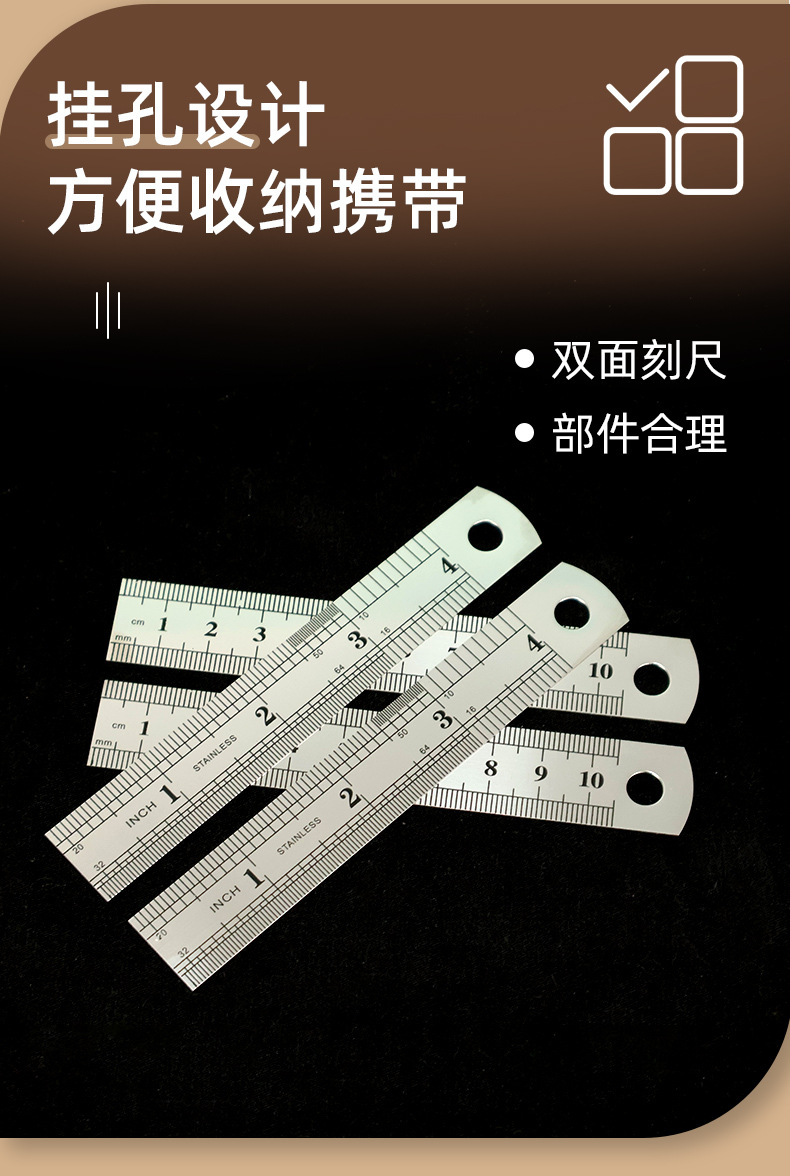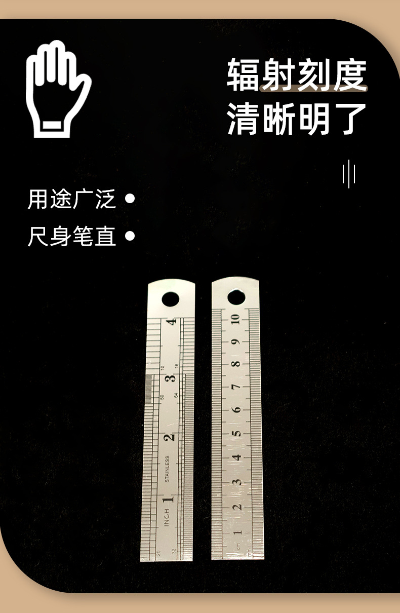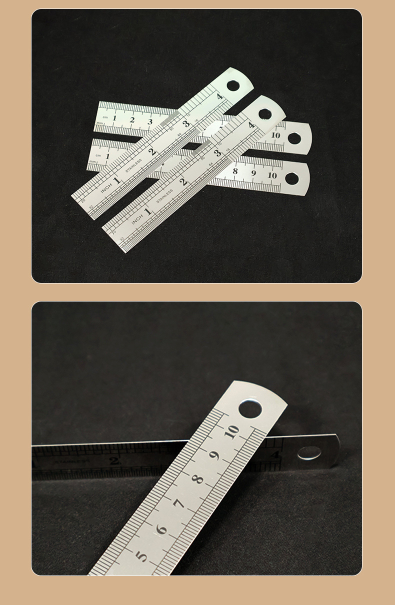 4インチ10cmステンレス定規両面スチールスケール足厚鋼板インチセンチダブルスケールスチールスケール鉄定規