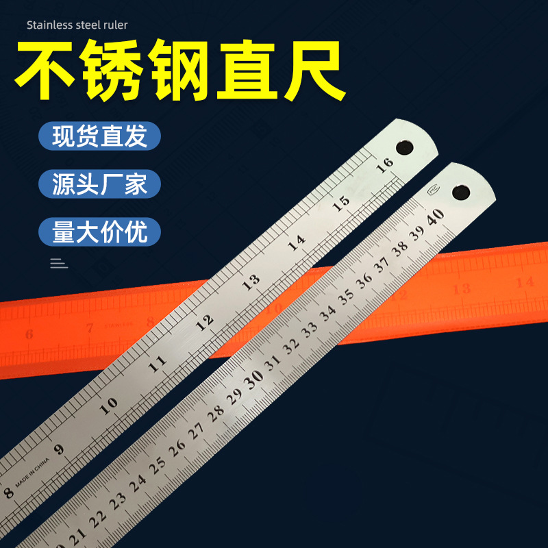 ステンレス鋼定規、厚みのある両面スケール、さまざまな仕様、オプションの学習およびオフィスツールスケール、卸売およびカスタマイズ