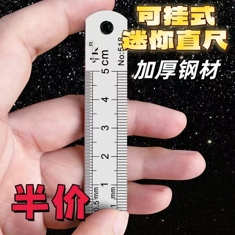 小钢尺挂锁匙扣小尺子拆快递小尺子迷你尺5CM钢尺短尺子5厘米小号