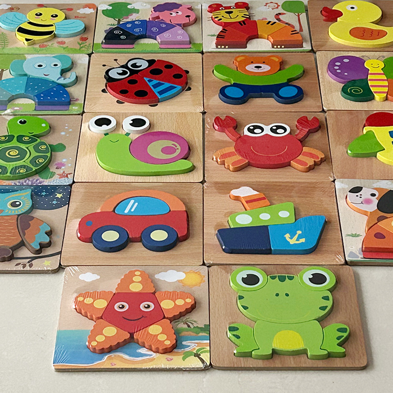 木の3dの立体のジグソーパズルは動物の漫画の交通を厚くして板をつづり合わせます。