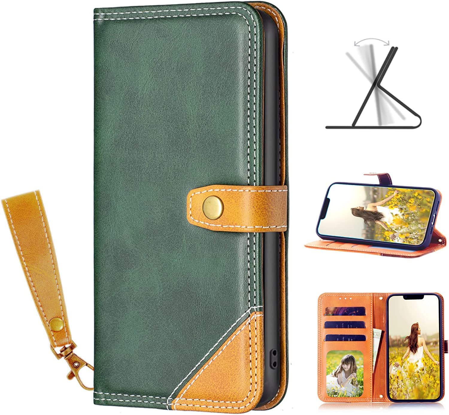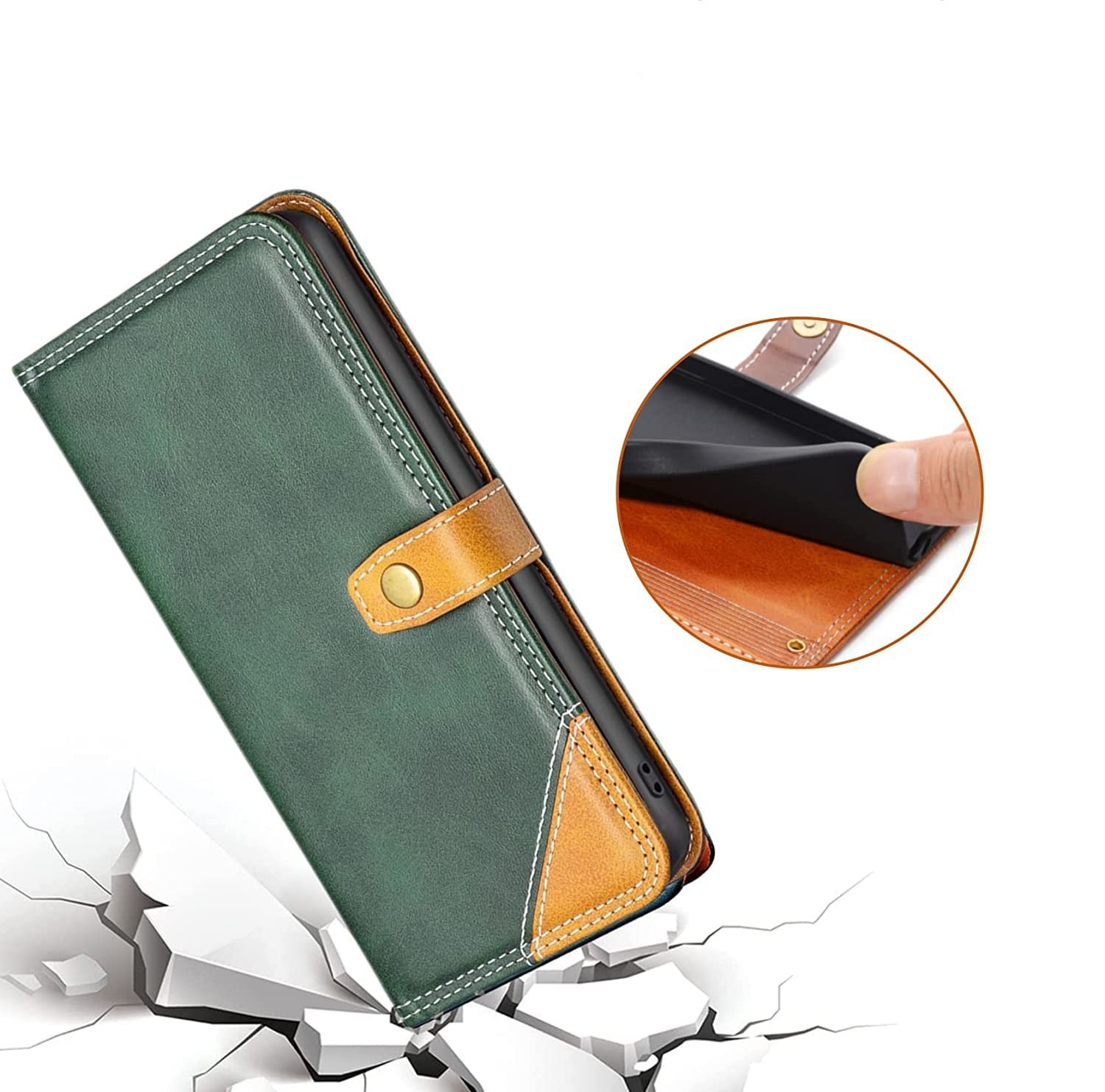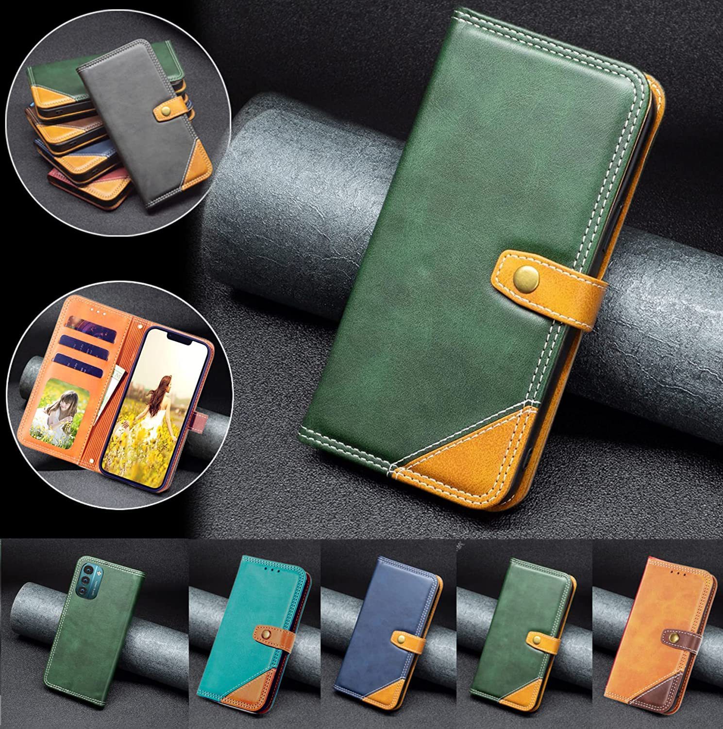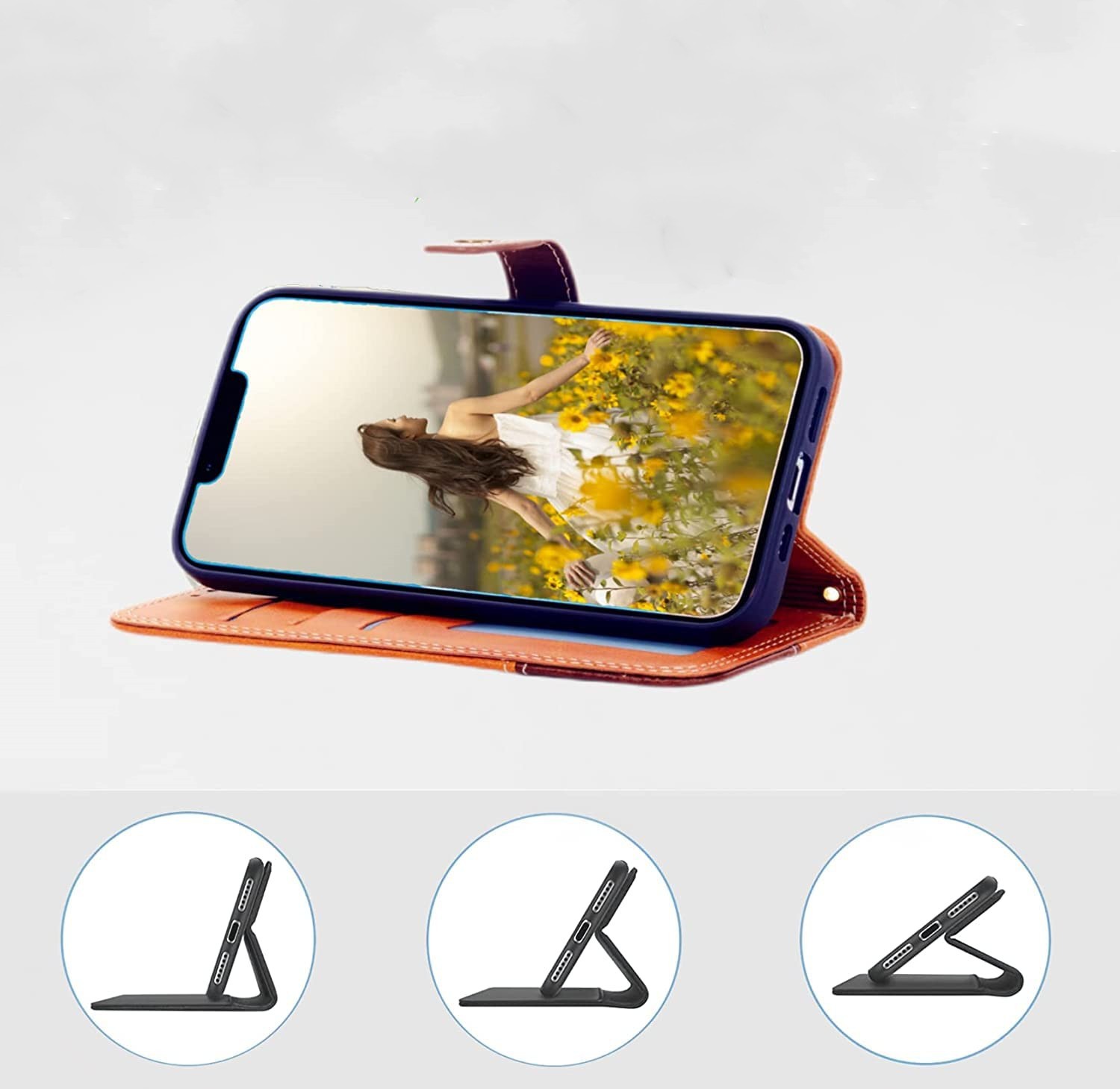 日本と韓国のコントラストカラーのレザーiPhone保護ケース携帯電話ホルダー革新的なターバンバックル付きマルチカードスロットAppleレザーケース