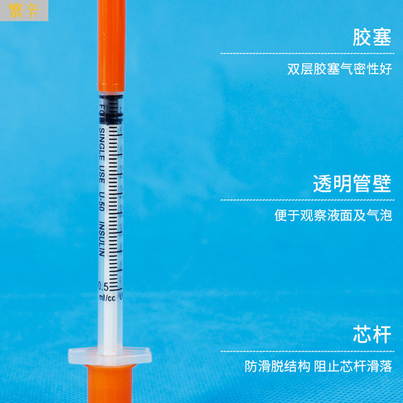 既製注射器 インスリン用使い捨て注射器 格納式スケール付き固定式手動注射器