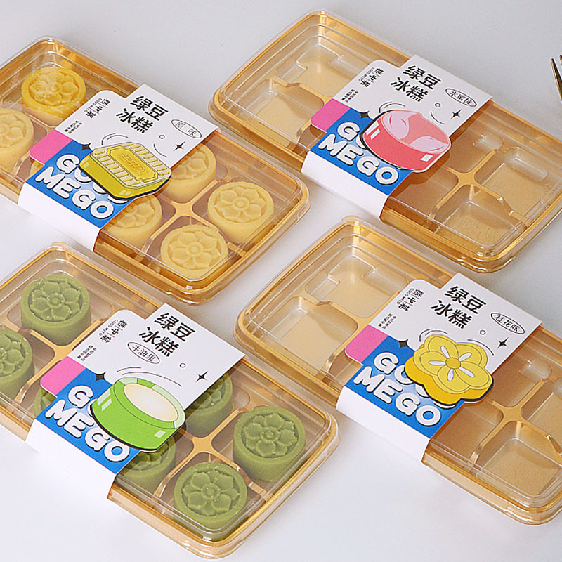 中国式8粒の牛油果緑豆アイスクリームの包装箱水蜜桃あんもちの使い捨て金色の鮮度保持包装箱