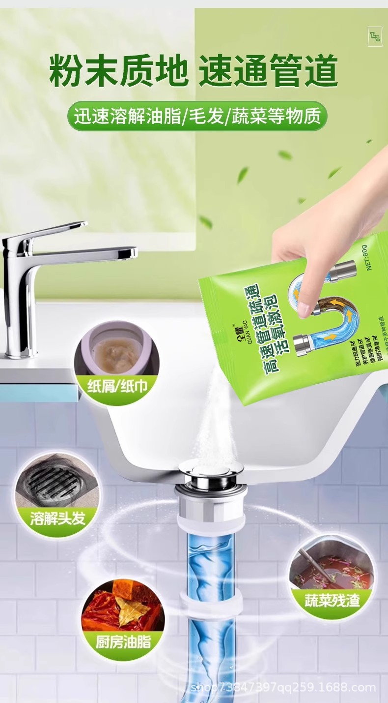 【Tik Tok人気モデル】Quanyao 高効率バブルパウダー 高速溶解バブルパウダーマジック キッチンやトイレの油汚れ詰まりに