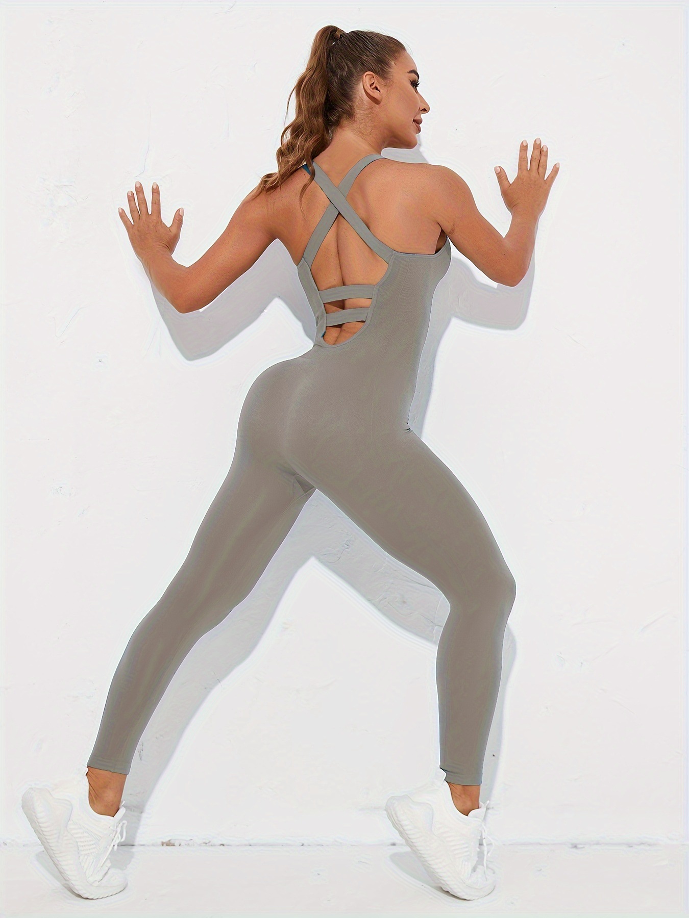 ソリッドカラーシームレディースヨガジャンプスーツアスレチックワンクロスボーダー