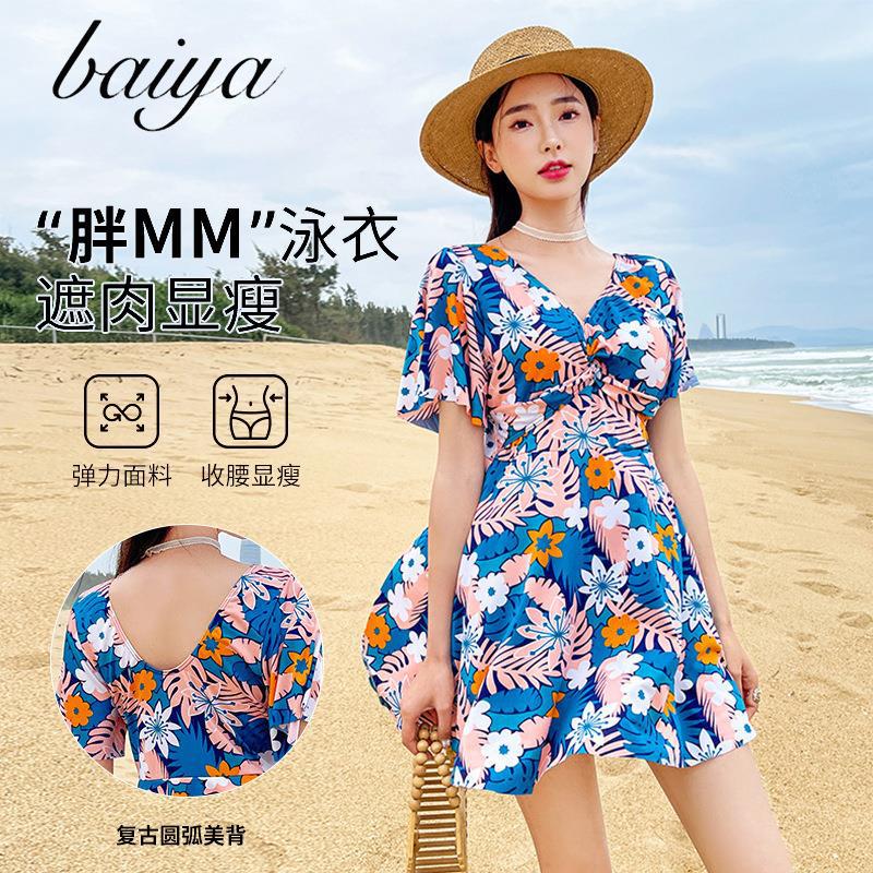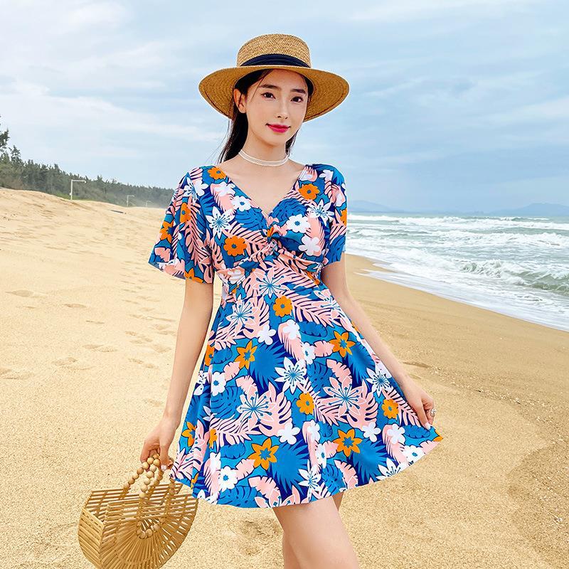 スポーツ水着痩身リゾートスタイルお腹カバーツーピース学生新しいスプリット水着女性卸売夏温泉なし