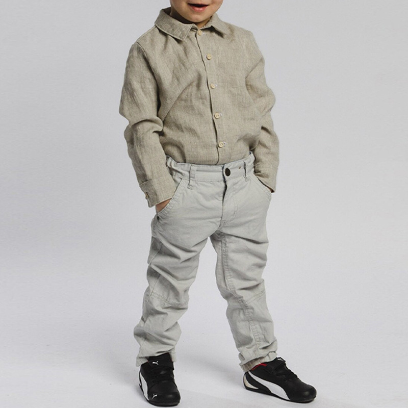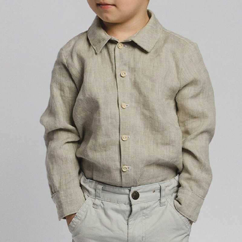 北欧风苎麻棉纯色长袖衬衫男女宝宝秋季立领单排扣设计简约衬衣童