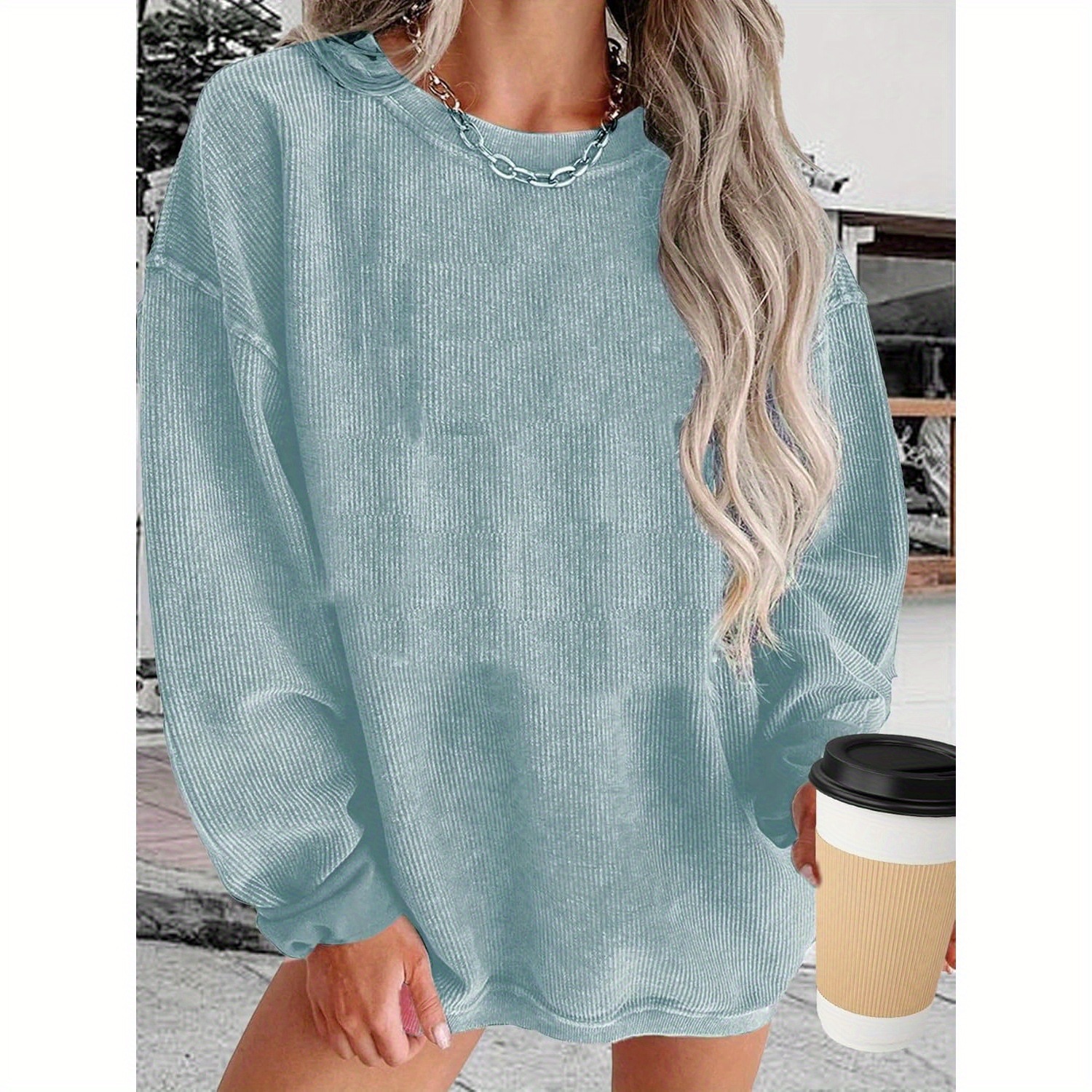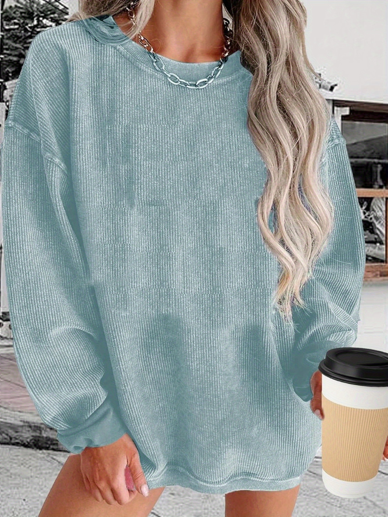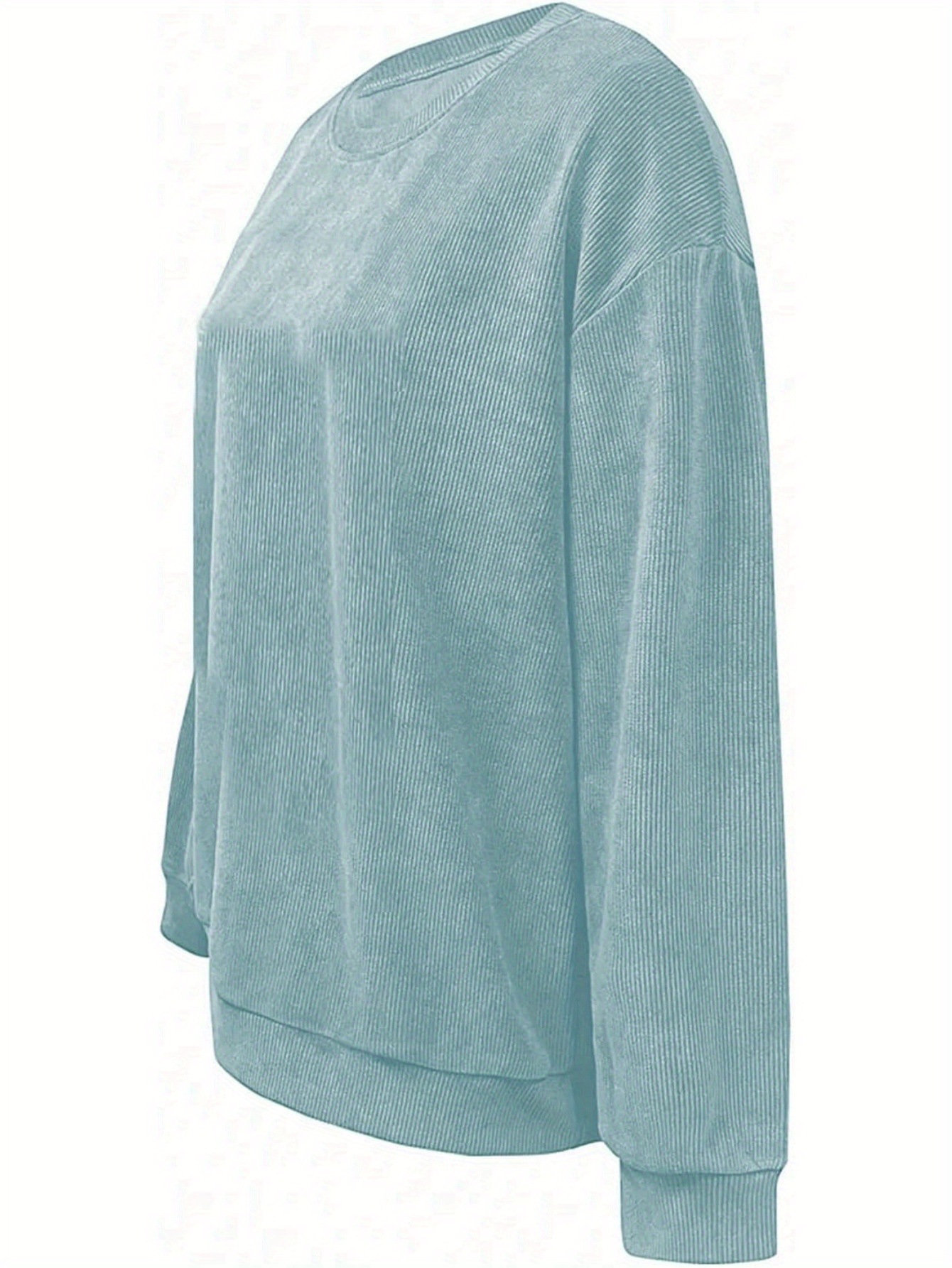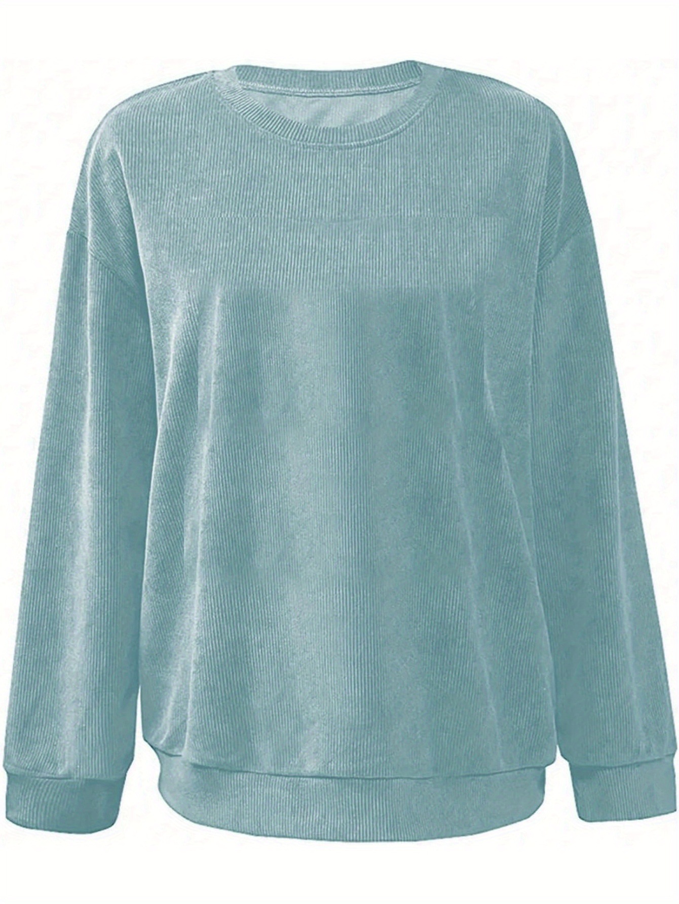 エレガントなプラスサイズ、ティール色のクルーネック、ポケット付きリブセーター