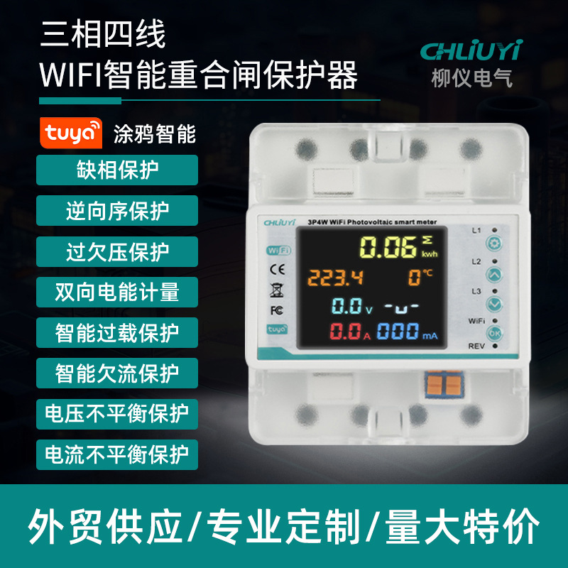外国貿易向け三相4P WiFiリモート集中制御スマート再閉路装置 双方向電力計測 欠電・漏電検知 RS485