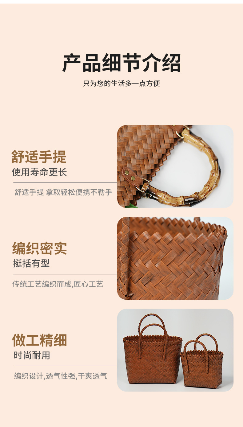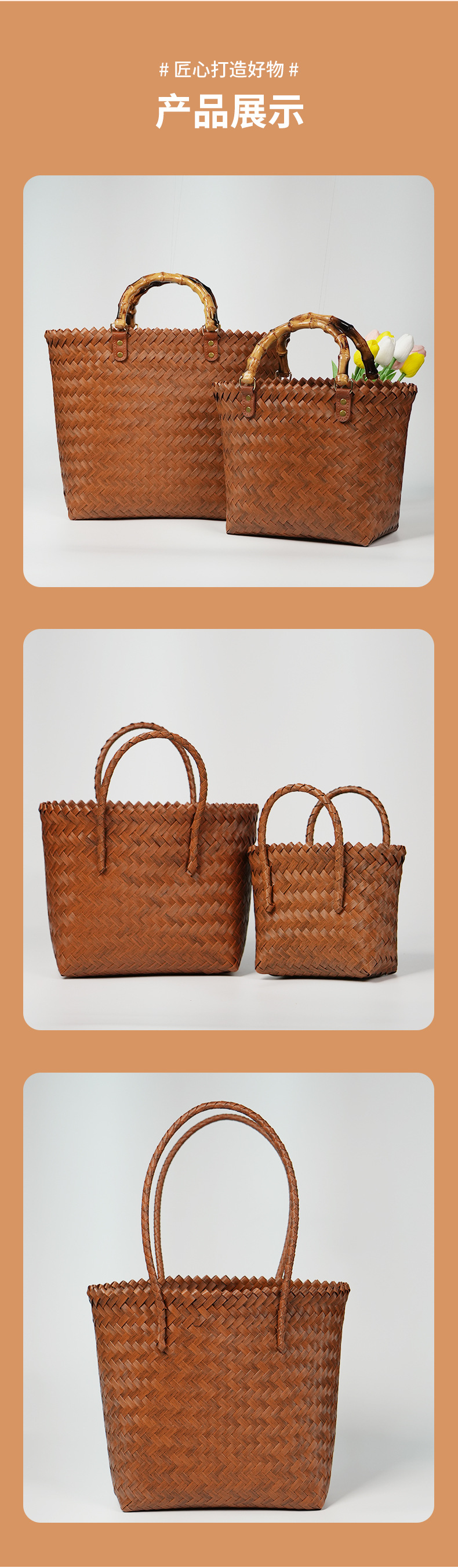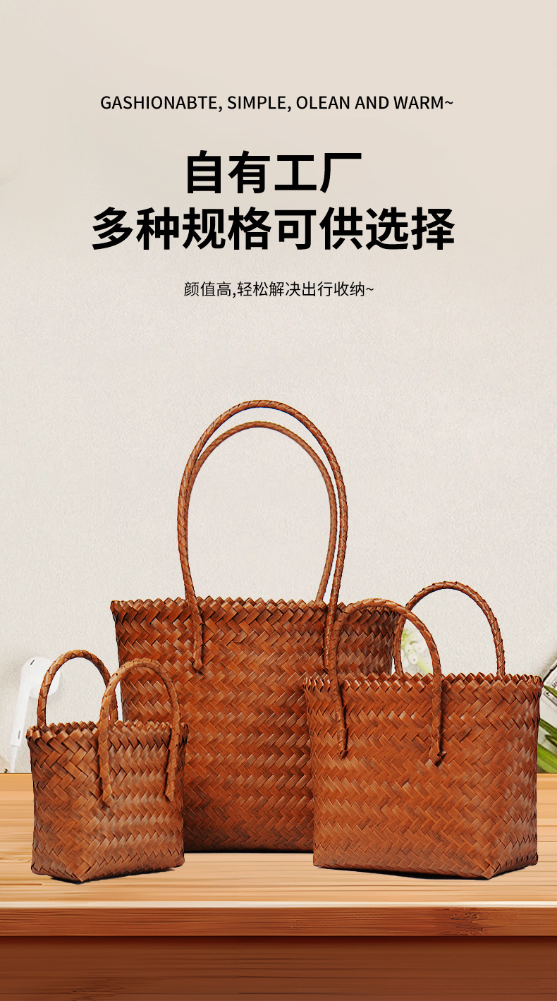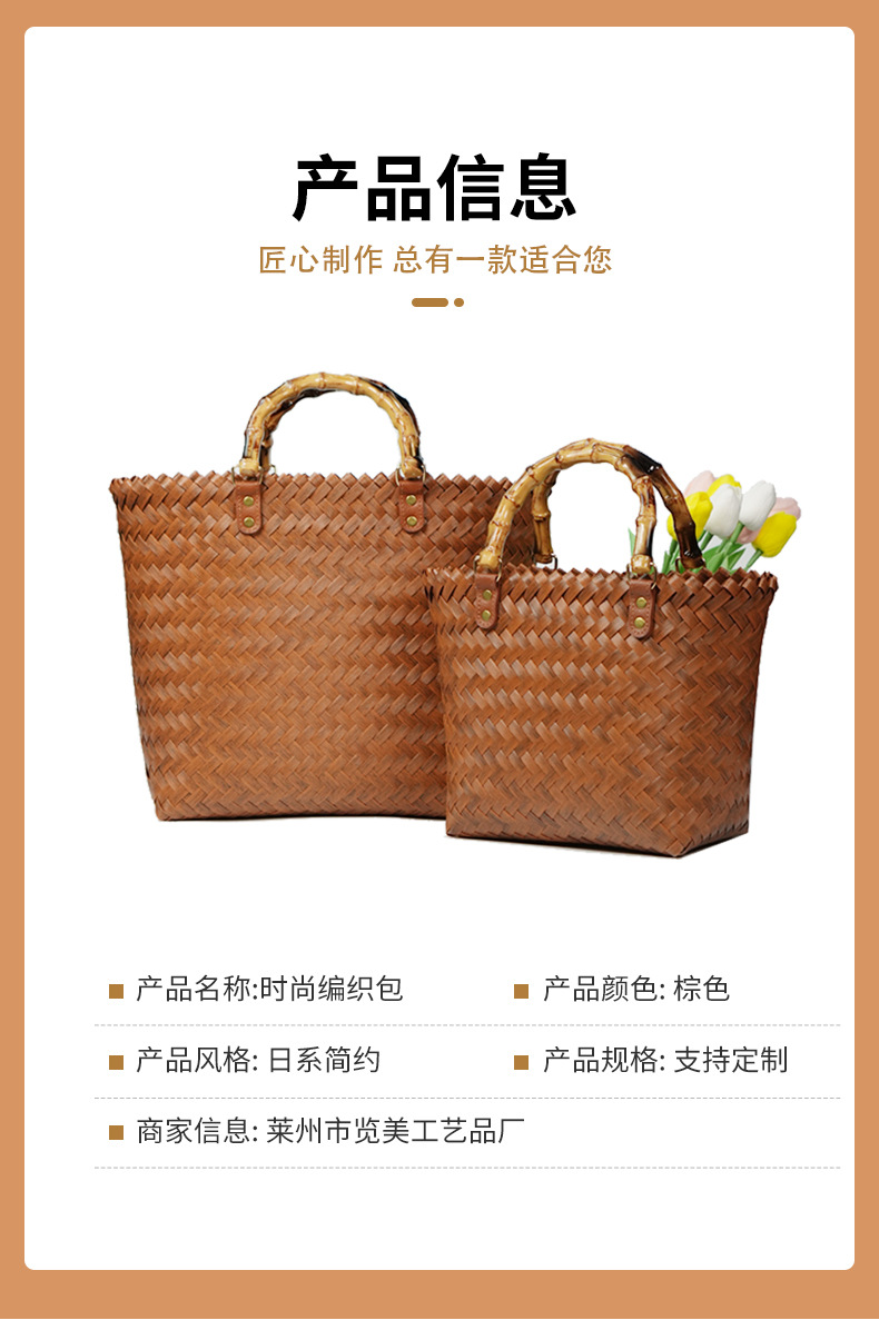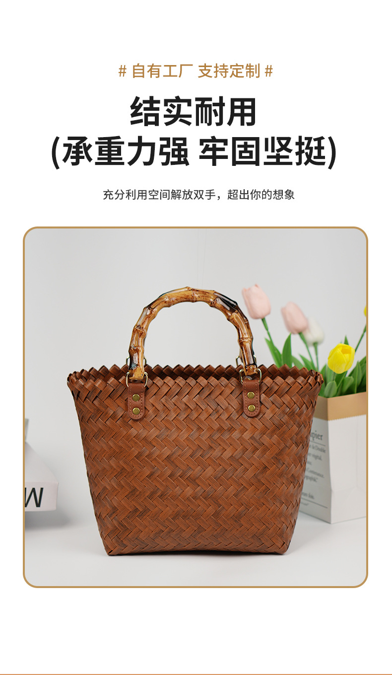 2025 新しい大容量手織りバッグ、ファッショナブルで多用途な織りバッグ、野菜かご、レトロな竹バッグ、ビーチバッグ