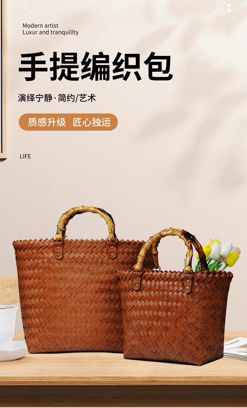 田园风编织包纯手工竹编2025新款法式手提草编彩色包包藤编高级感