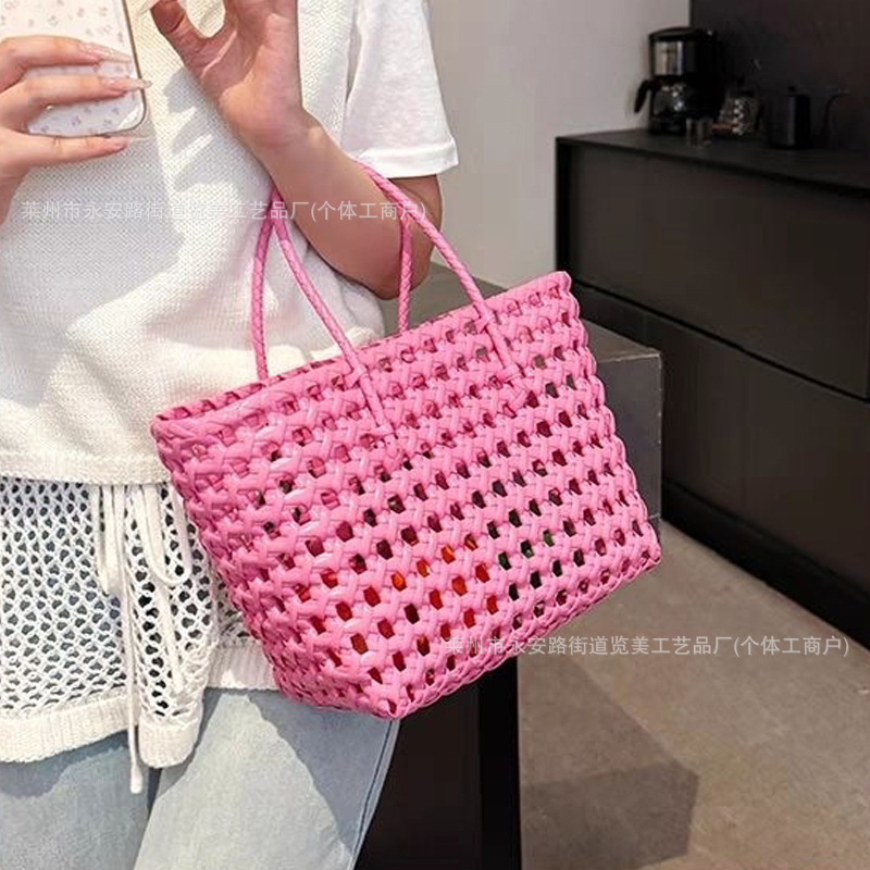 2025 新しいドーパミンバッグ韓国スタイルの手持ち手織りバッグピンク中空ホリデースタイル野菜バスケット