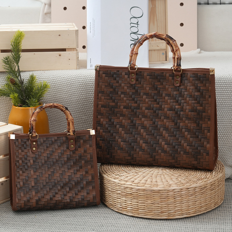 新しい籐ハンドバッグ、竹バッグ、レトロでシンプルな竹トートバッグ、大容量ショッピングバッグ、多用途の織バッグ