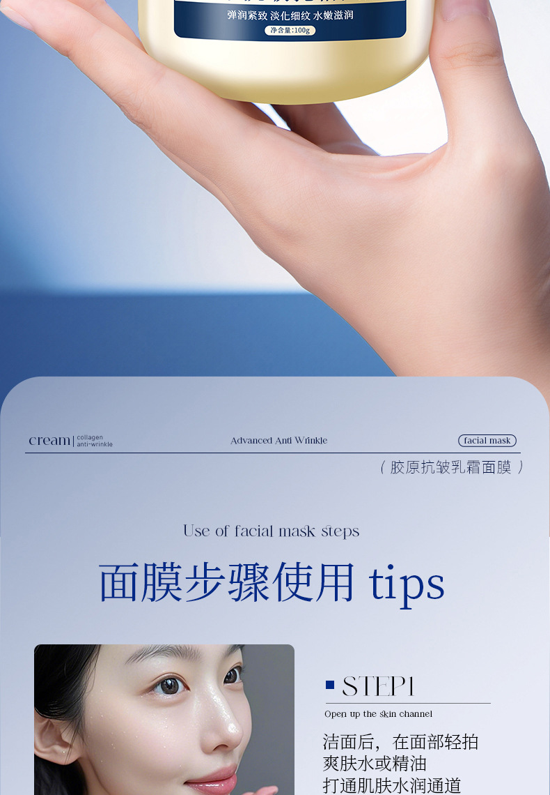 コラーゲン抗シワクリームマスク、保湿、引き締め、小じわ、スリーピングマスク、洗い流さないマスク、夜更かし泥マスク、マスク