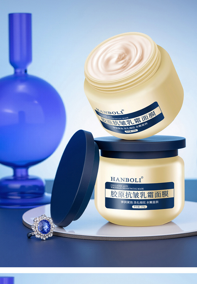 Hanboli コラーゲン抗シワクリームマスク水分補給、保湿、引き締め、乾燥改善、保湿、洗い流さないマスク