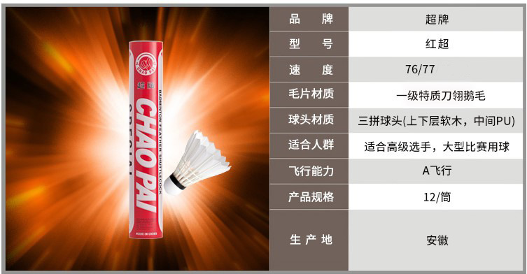 超牌红超羽毛球实体店行货比赛羽毛球紫超金红超鹅毛球