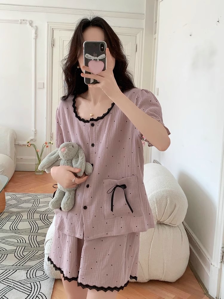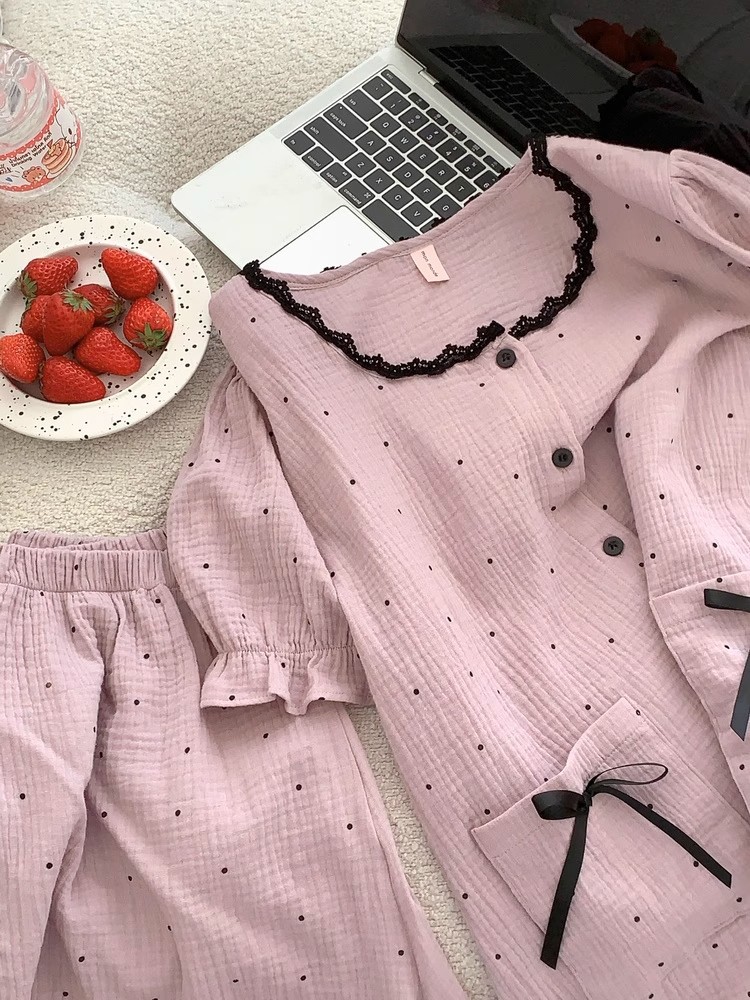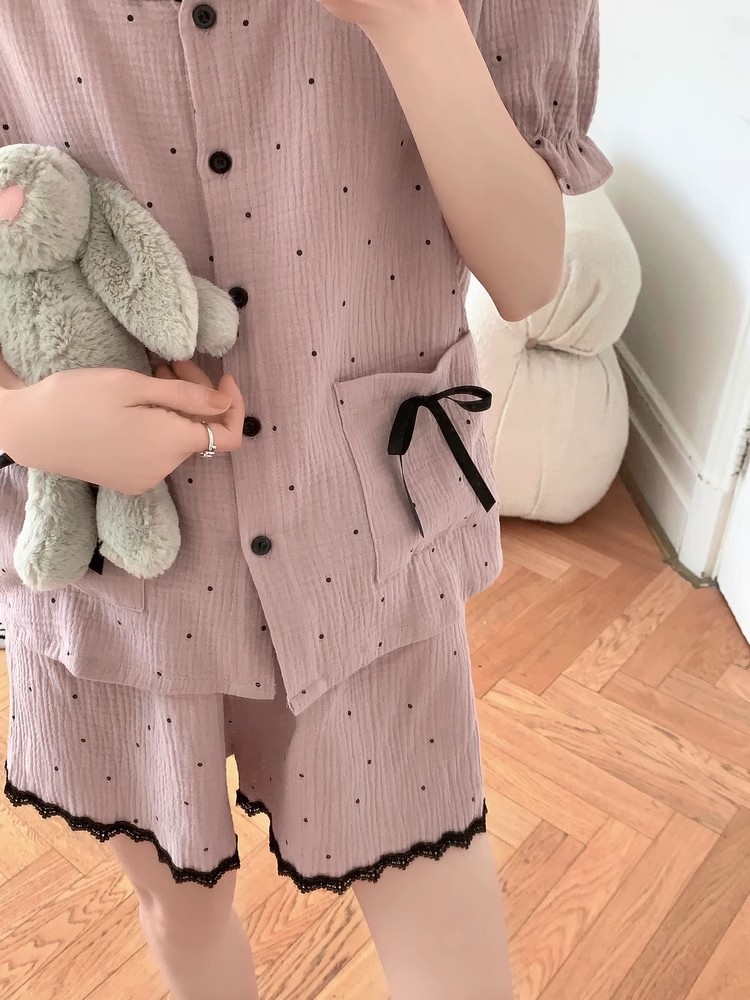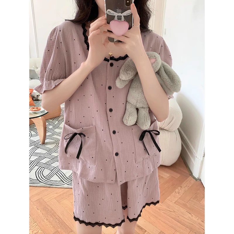 布帛ガーゼパジャマレディース长袖セット春秋学生カーディガンinsホームウェアゆったり可爱い高级感