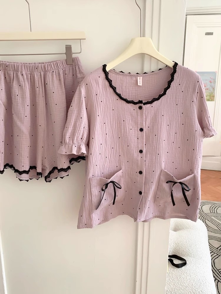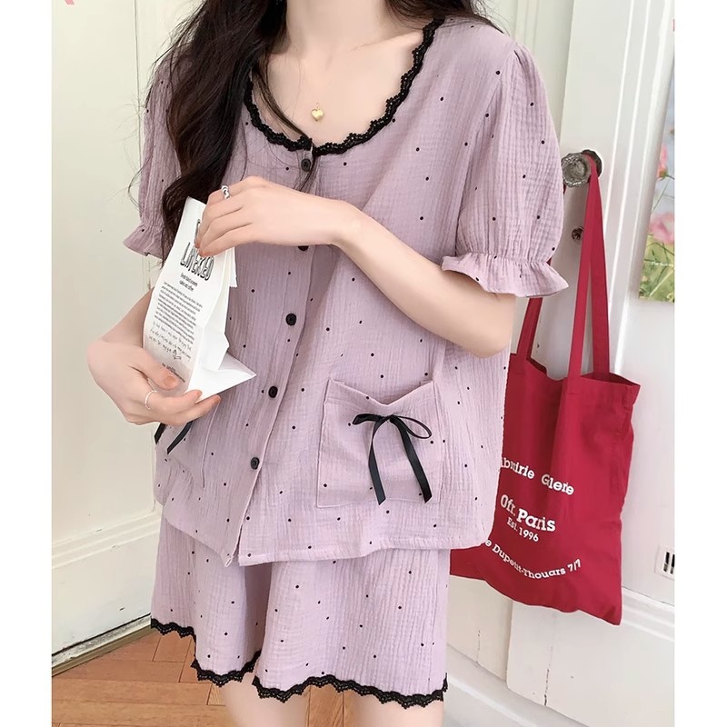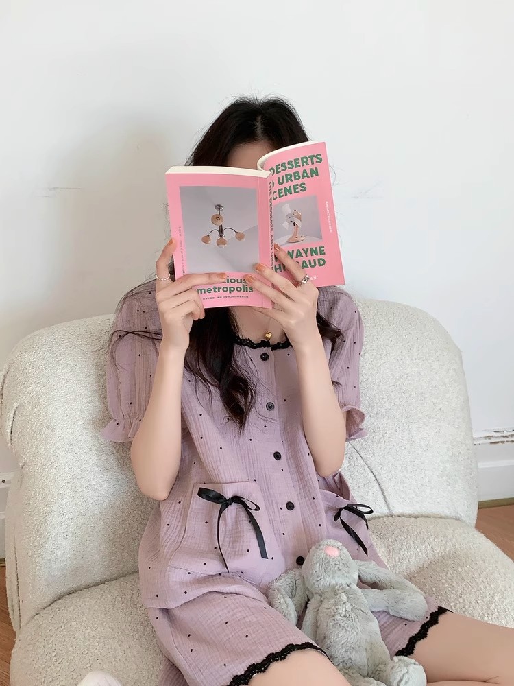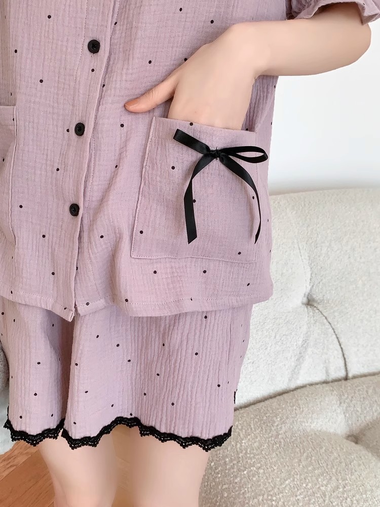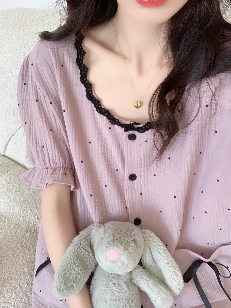 布帛ガーゼパジャマレディース长袖セット春秋学生カーディガンinsホームウェアゆったり可爱い高级感