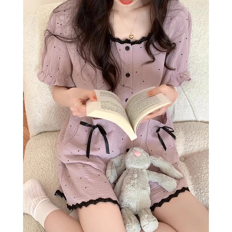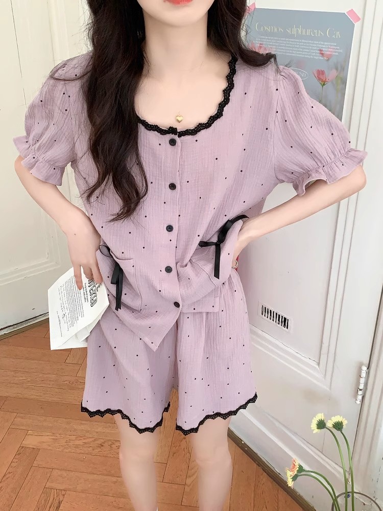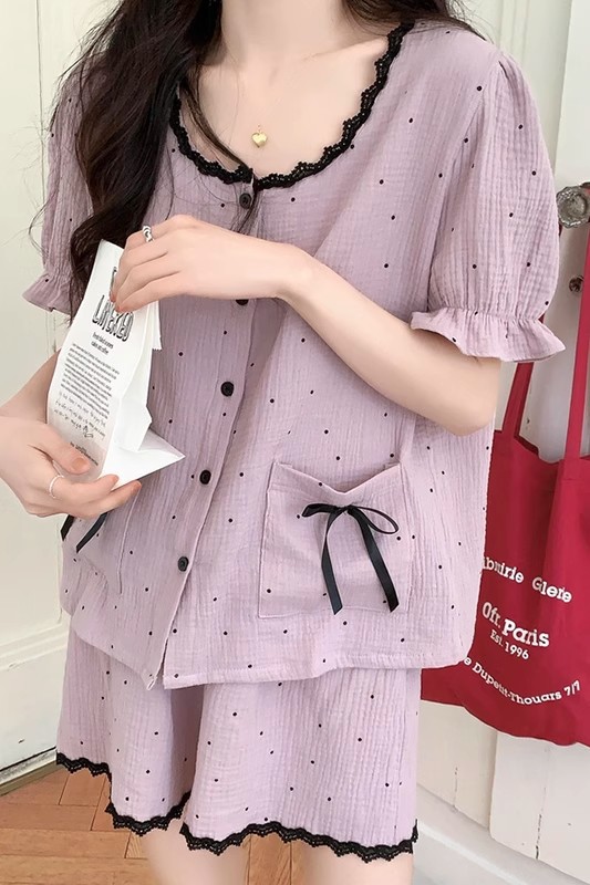 女性用フレンチパジャマ、夏用薄手大きいサイズ半袖スーツ、高級クロスボーダーホームウェア、夏のネットセレブスタイル、屋外で着用可能
