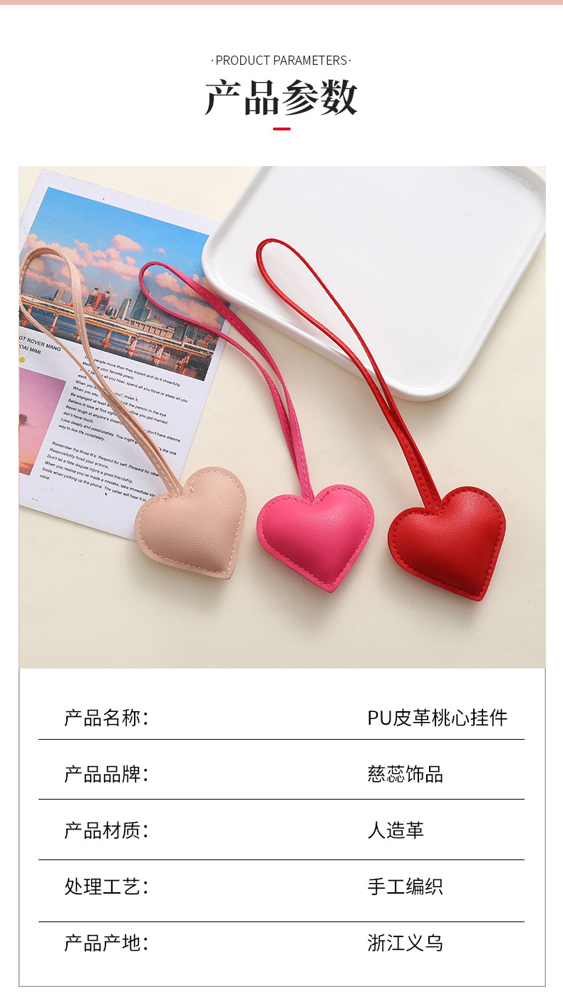 スポットクリエイティブ PU レザーピーチハートシンプルなレザーペンダントバッグペンダントラブバッグペンダント衣類バッグペンダント