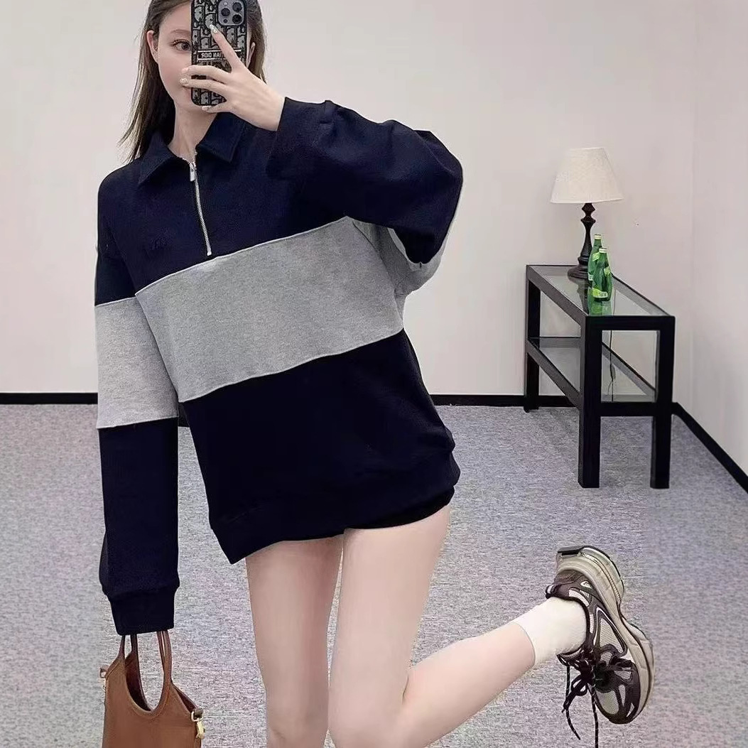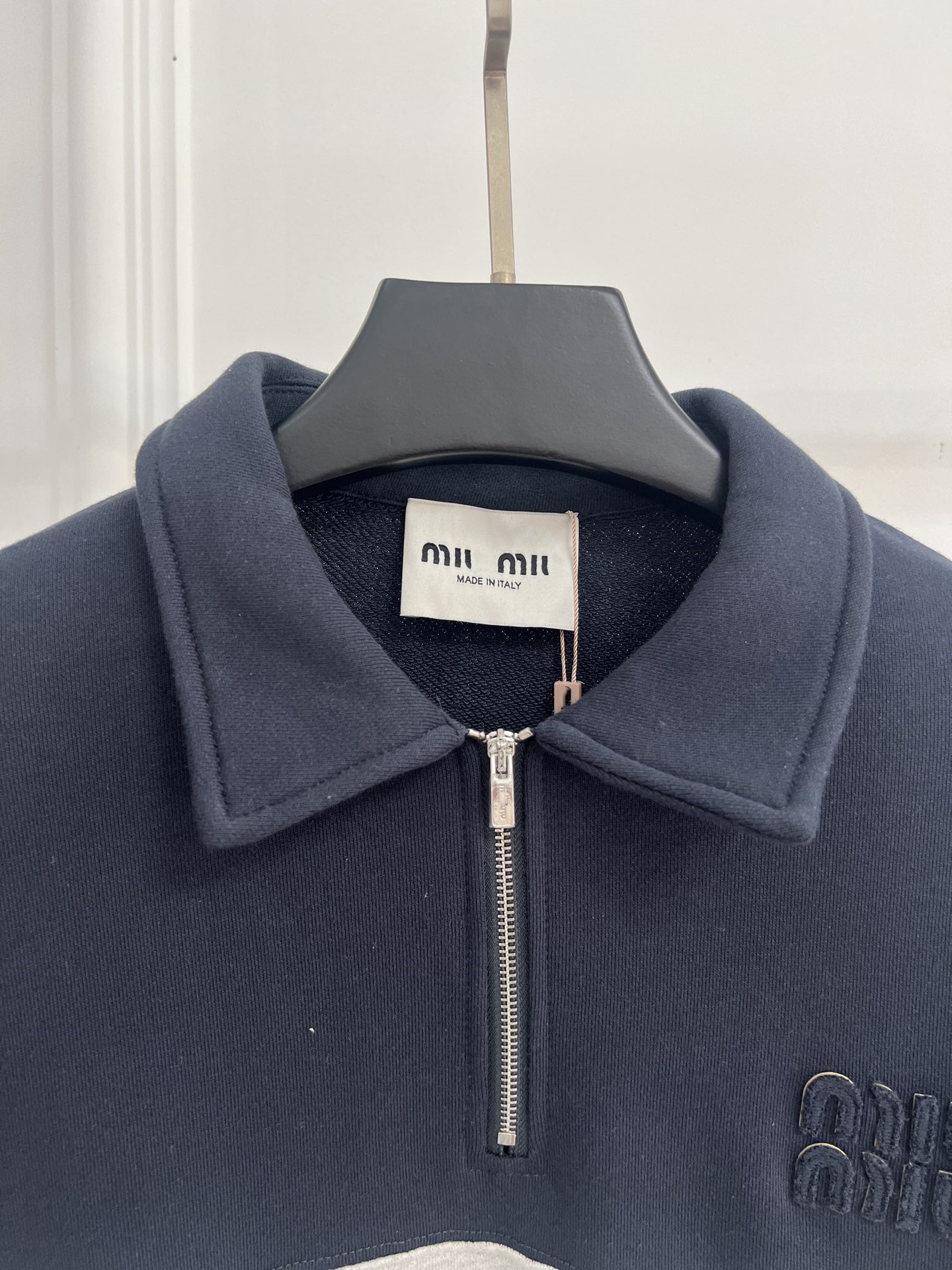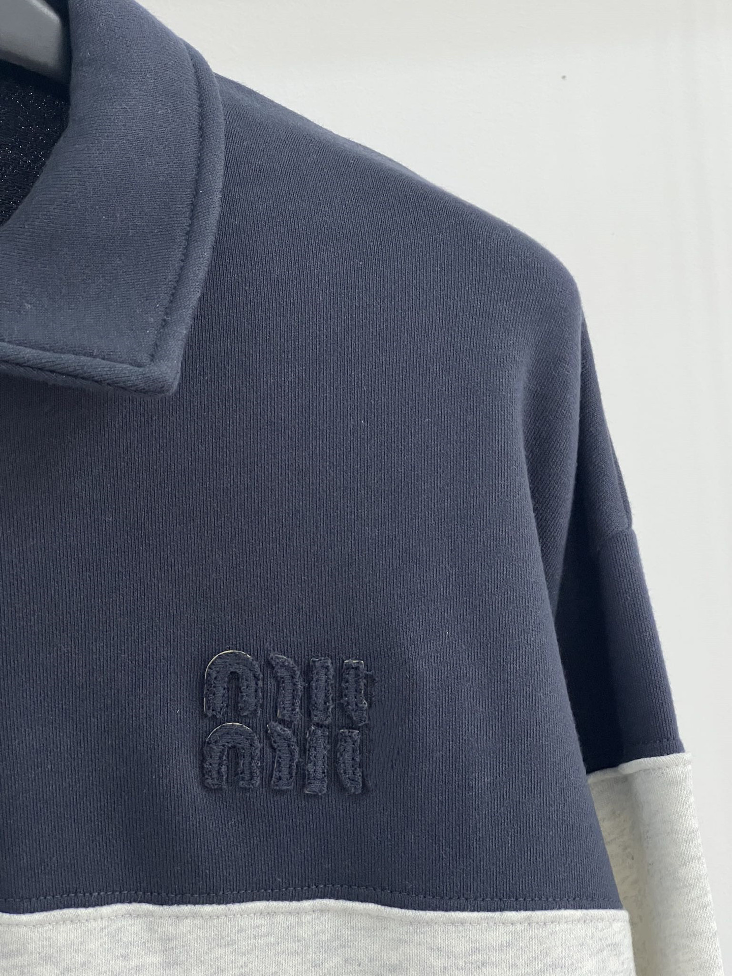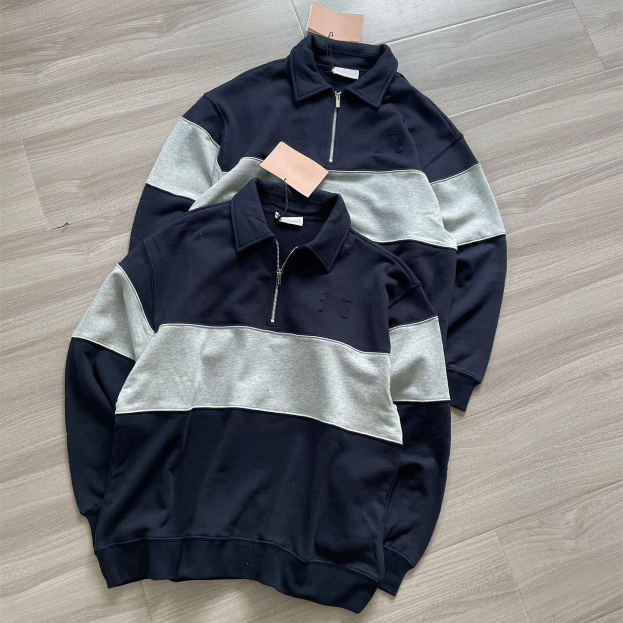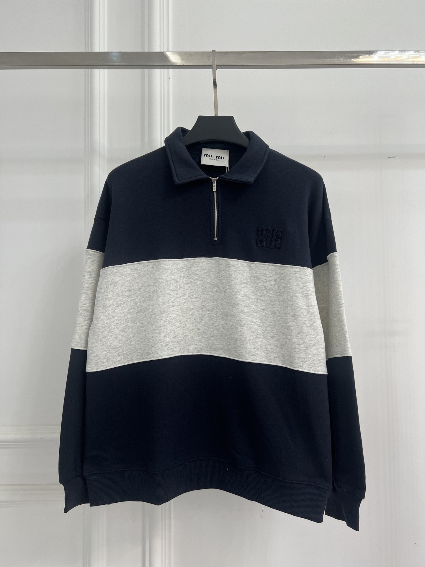 现货miumiu家秋冬翻领半拉链式卫衣女百搭宽松撞色那那女同款长袖