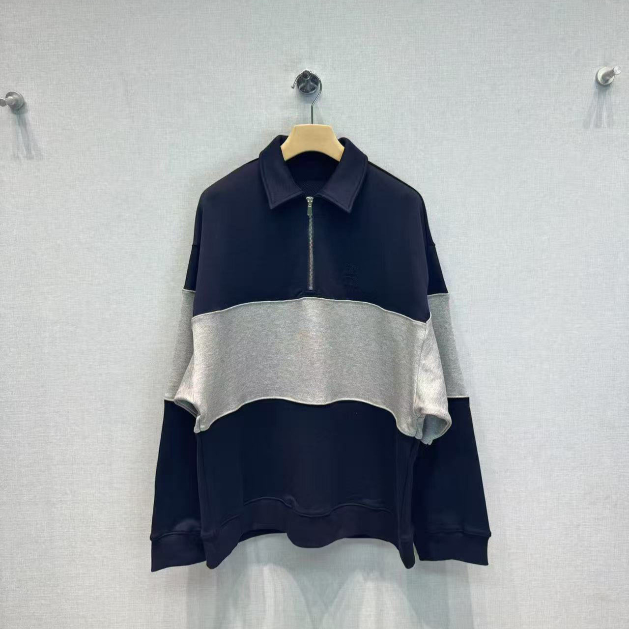 25秋新款miu撞色半拉链卫衣毕雯珺立领拼色宽松男女同款跨境代发