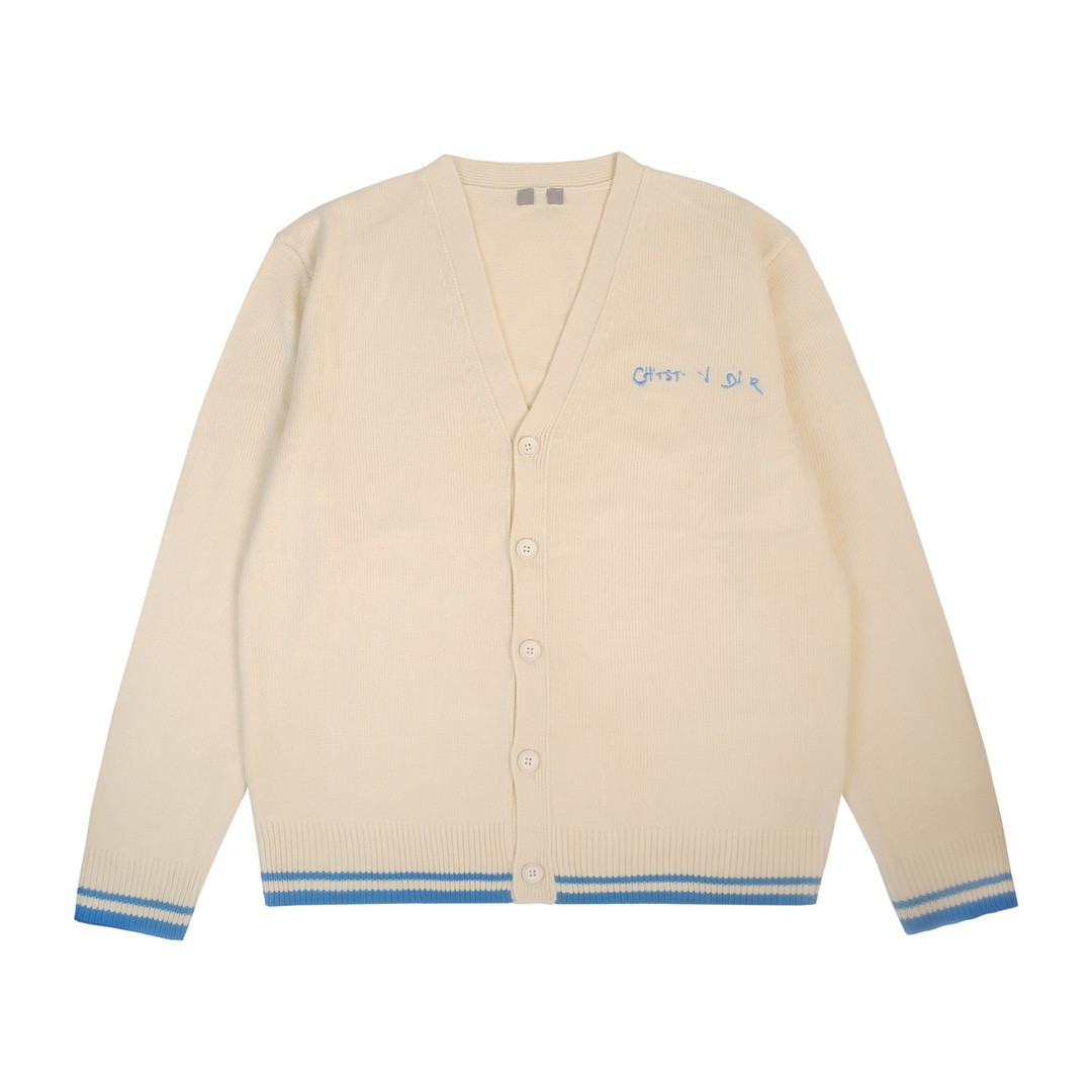 天井原標DI家24fw小アルファベット刺繍ロゴニットカーディガンウール混紡セーターコート