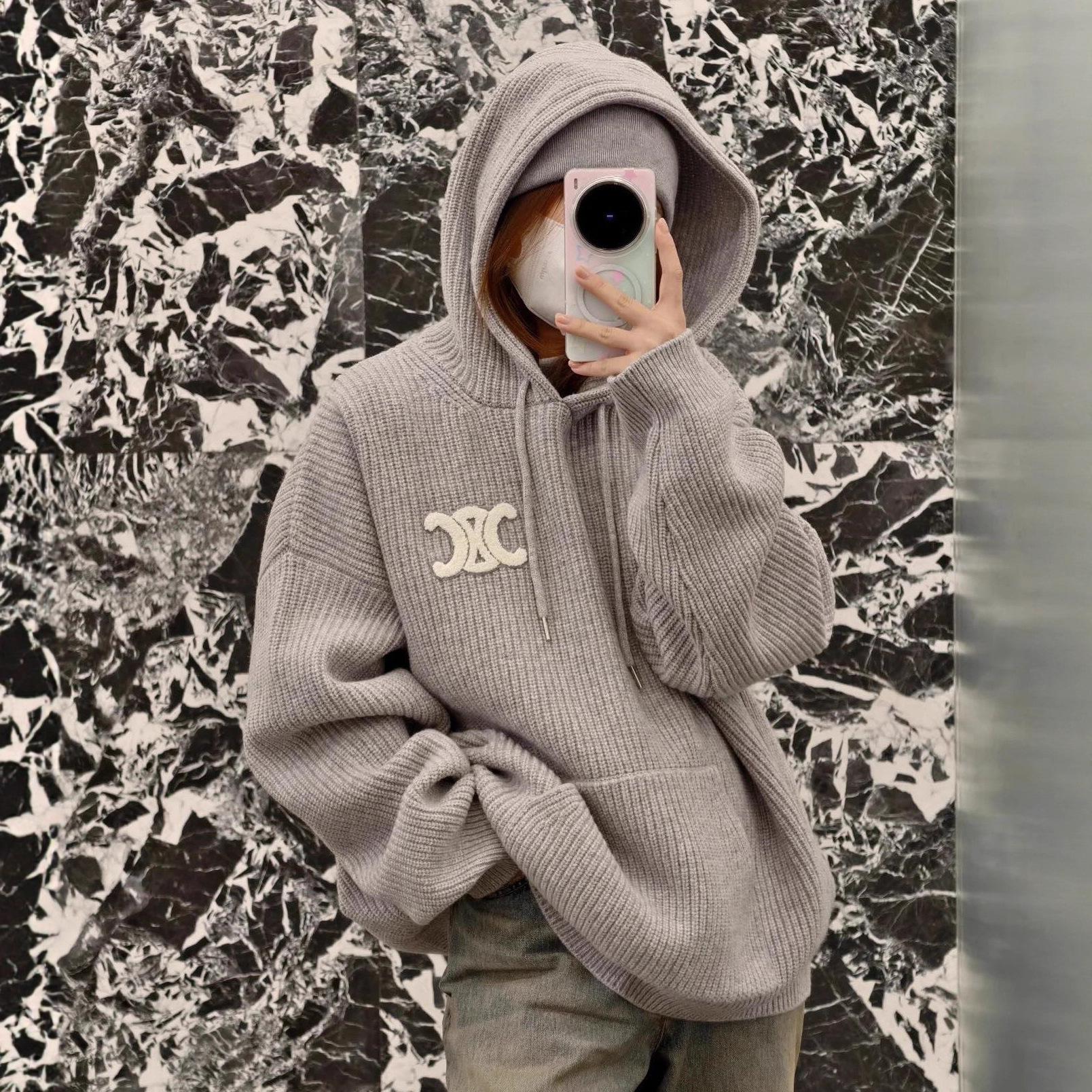 正确版本2025秋冬新款原标CEL家贴标刺绣LOGO连帽针织衫毛衣帽衫