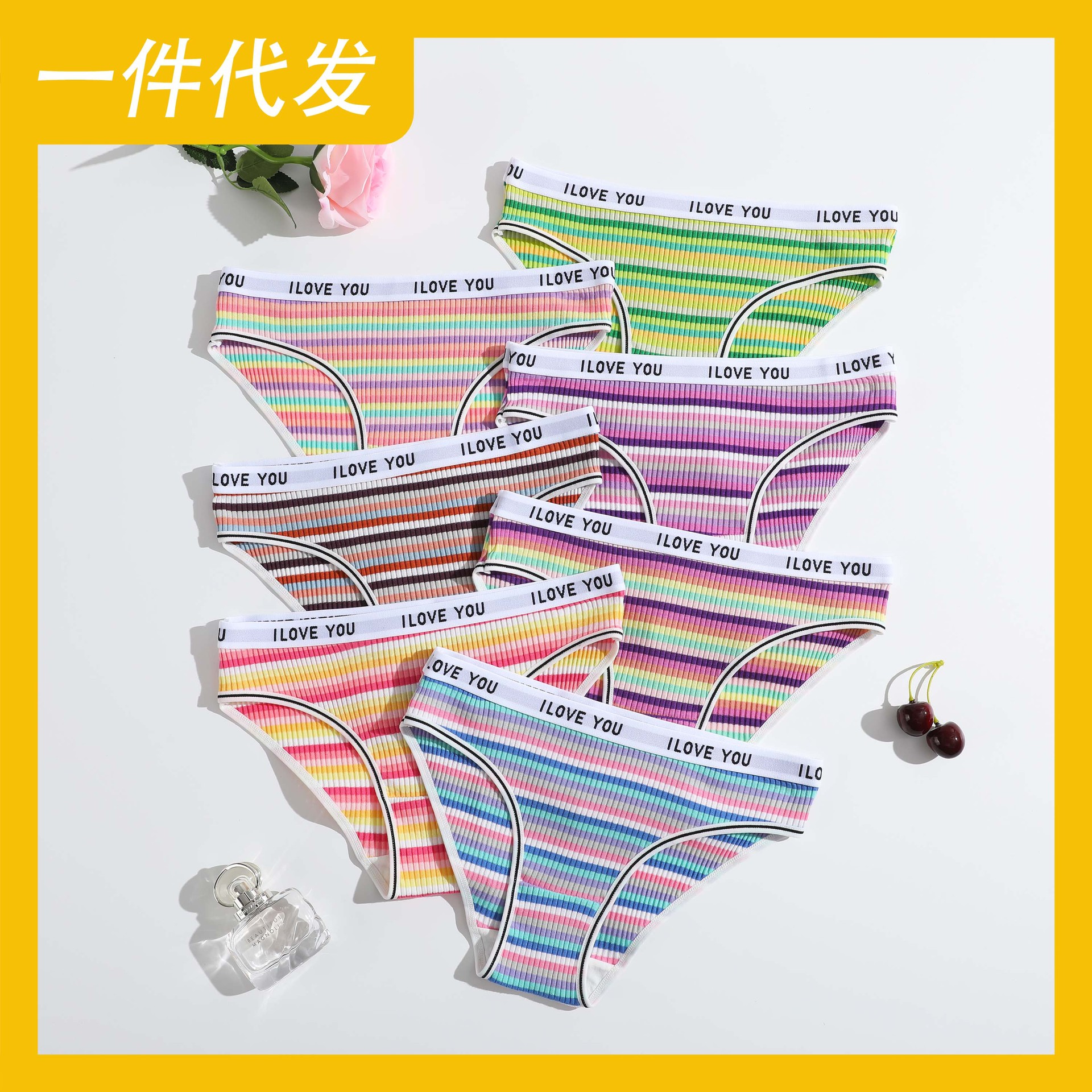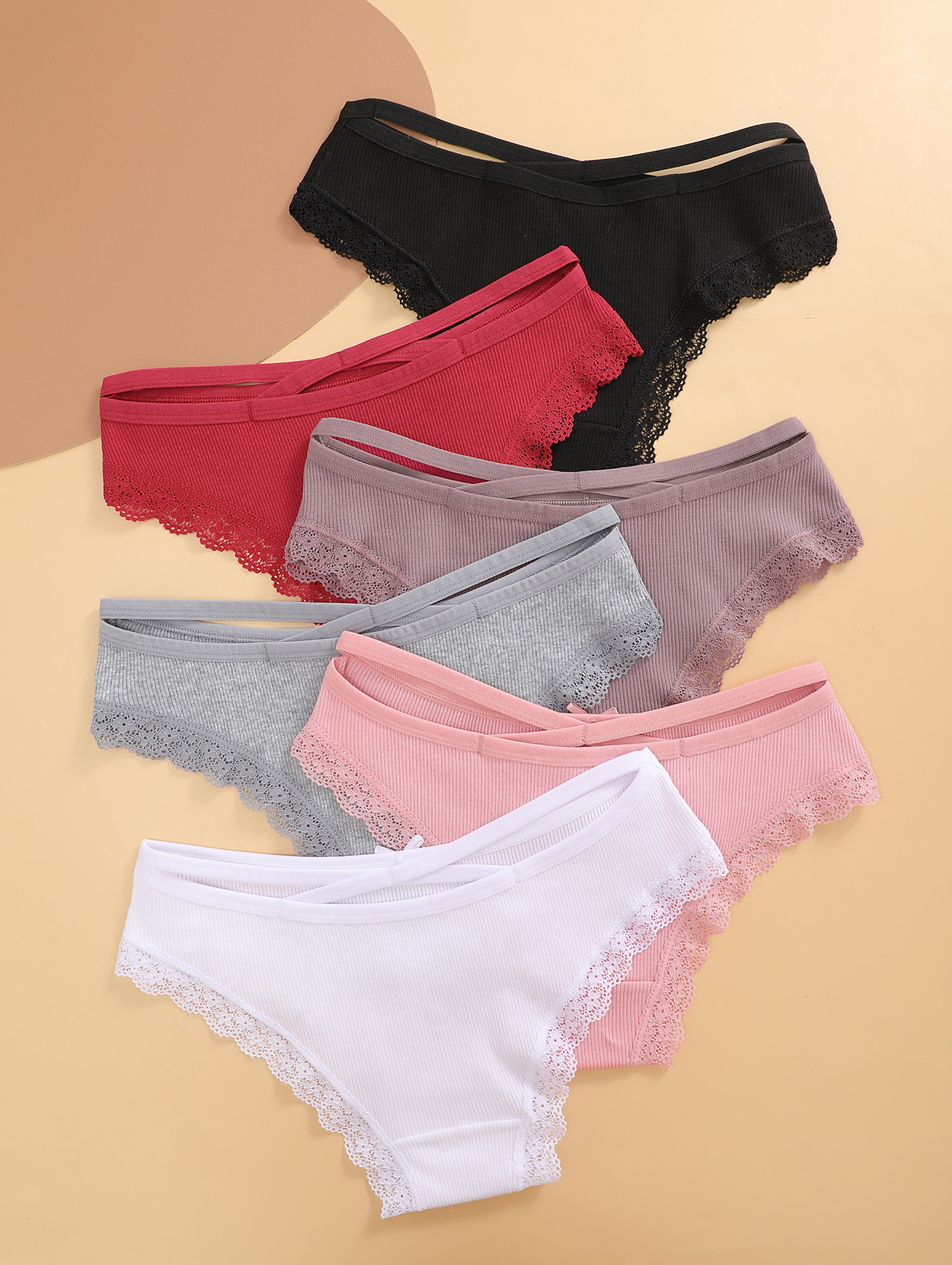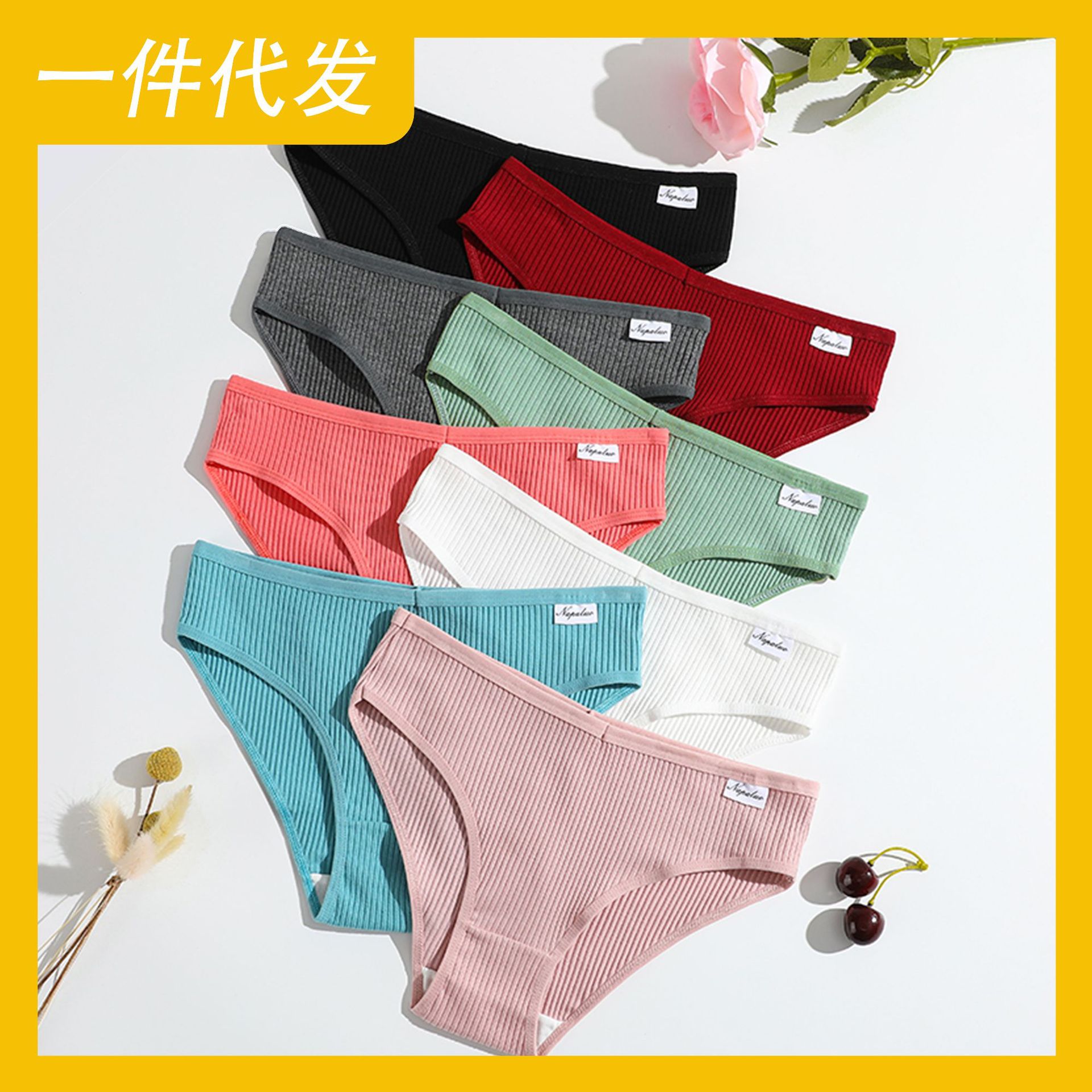 欧美爆款女士螺纹纯棉低腰透气三角裤