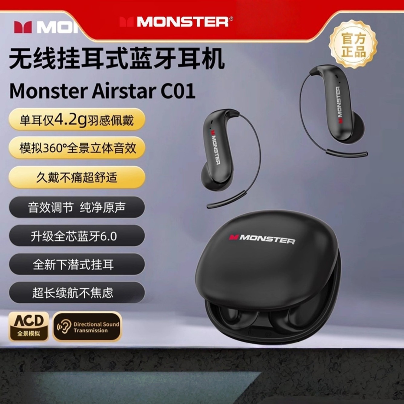 MONST磨声MQ037无线蓝牙耳机挂耳式运动降噪不入耳高品质跨境