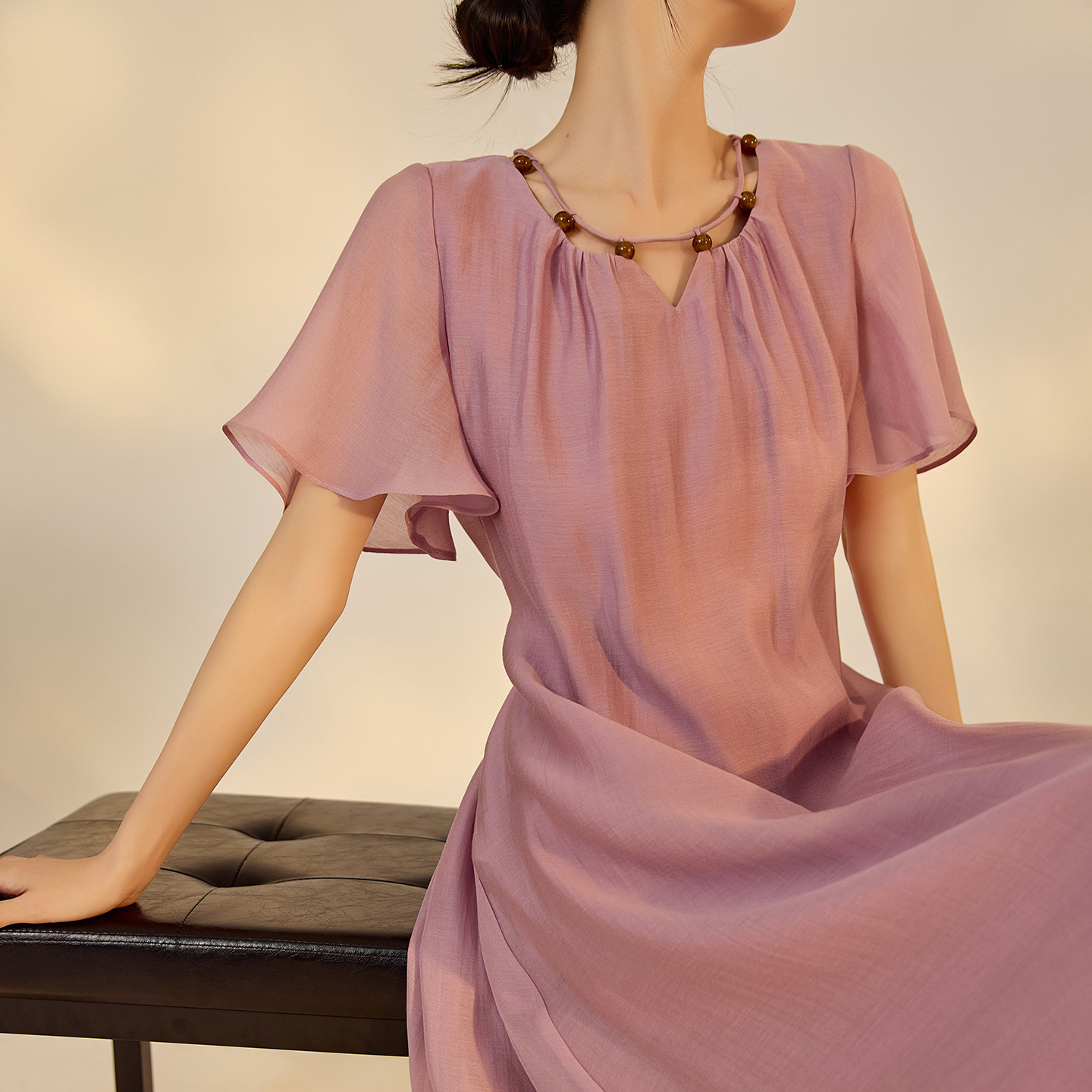 夏季国风气质天丝连衣裙简约显瘦甜美荷叶袖仙女裙女 ZX款N4061