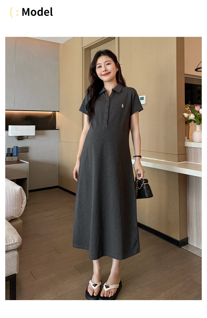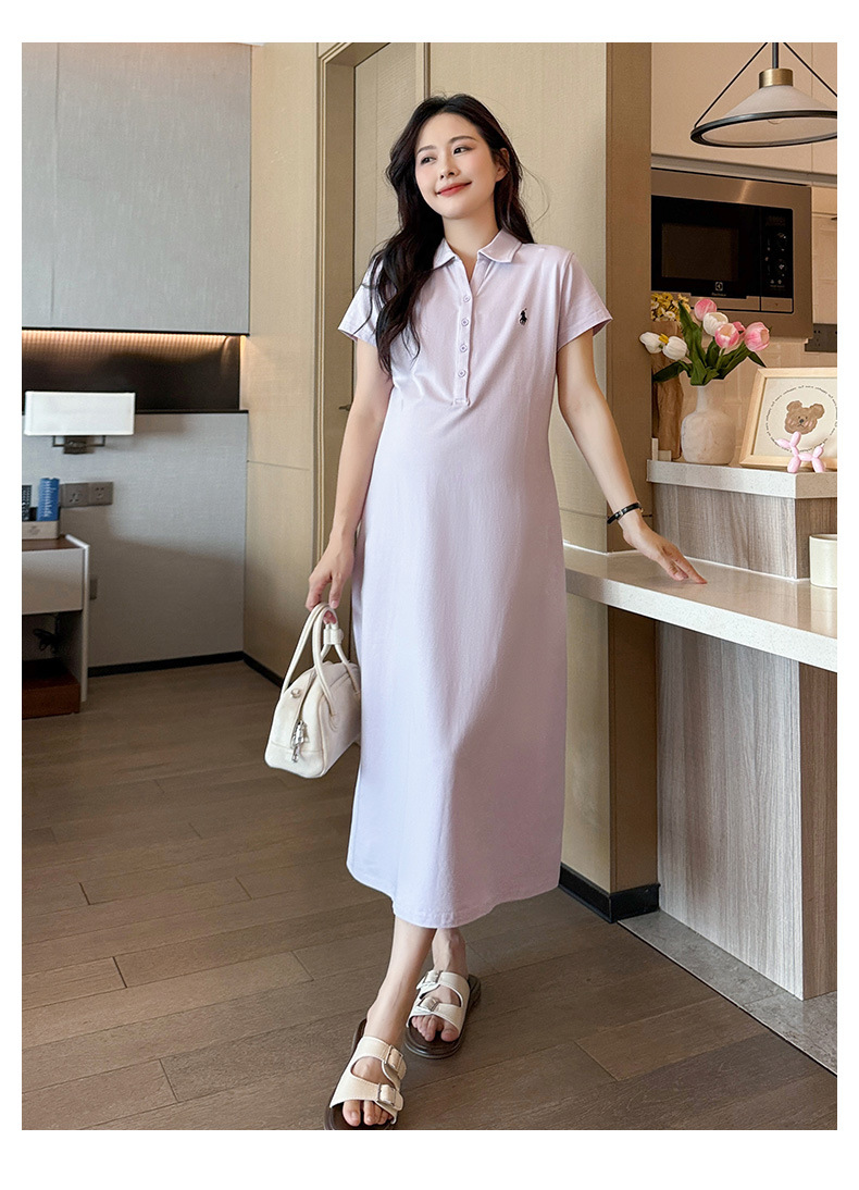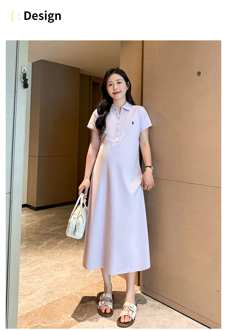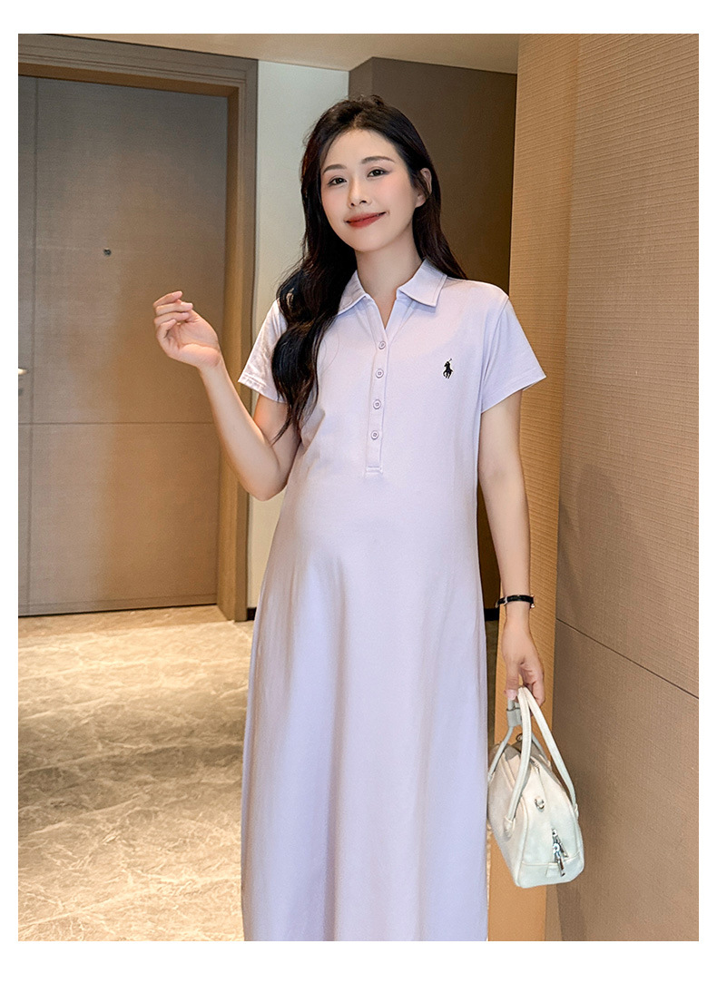 マタニティドレス夏ポロラペルファッションカジュアル大きいサイズロング年齢軽減夏薄いマタニティドレススカート