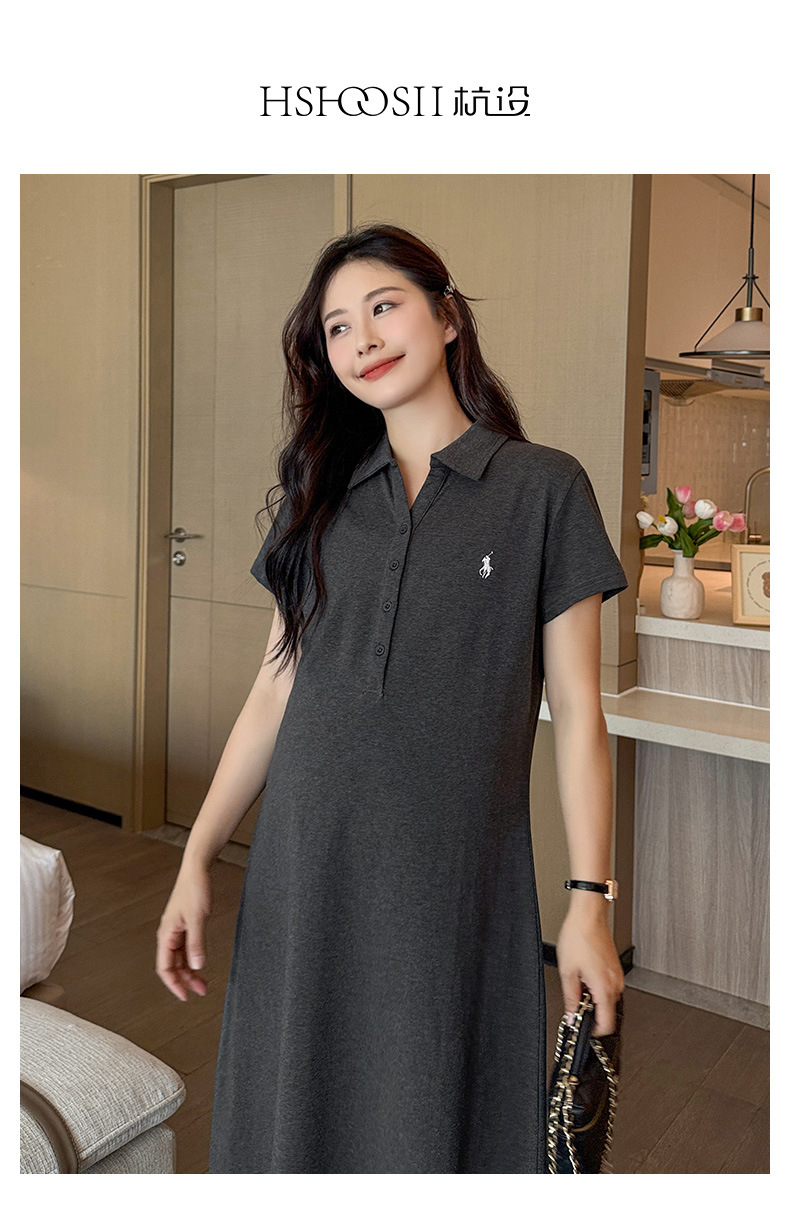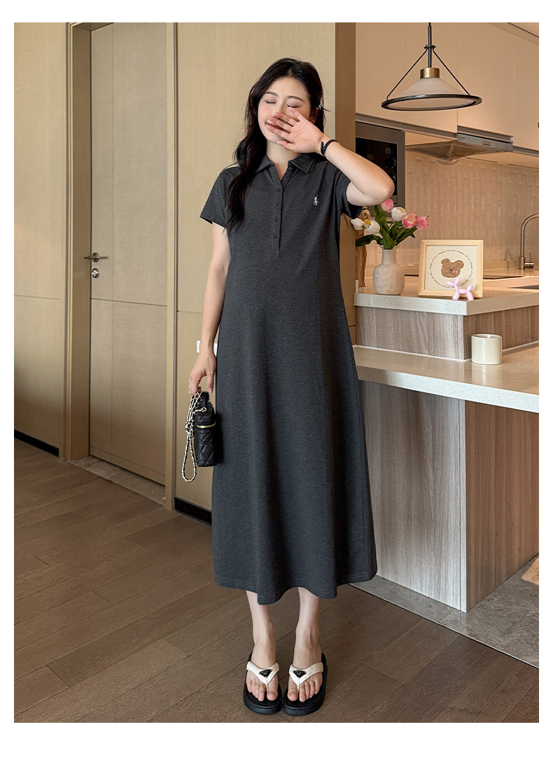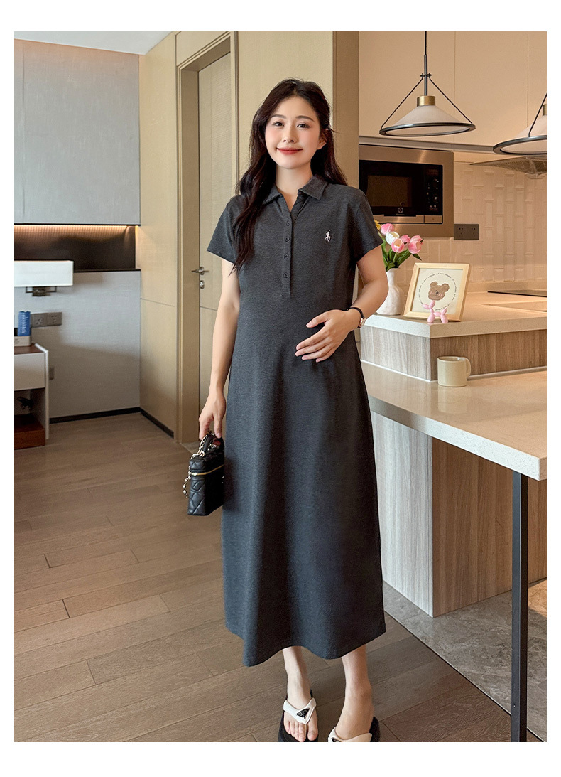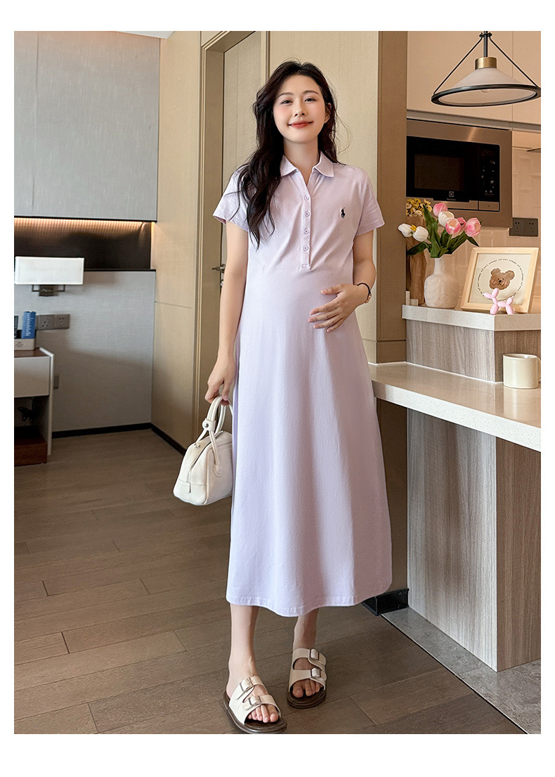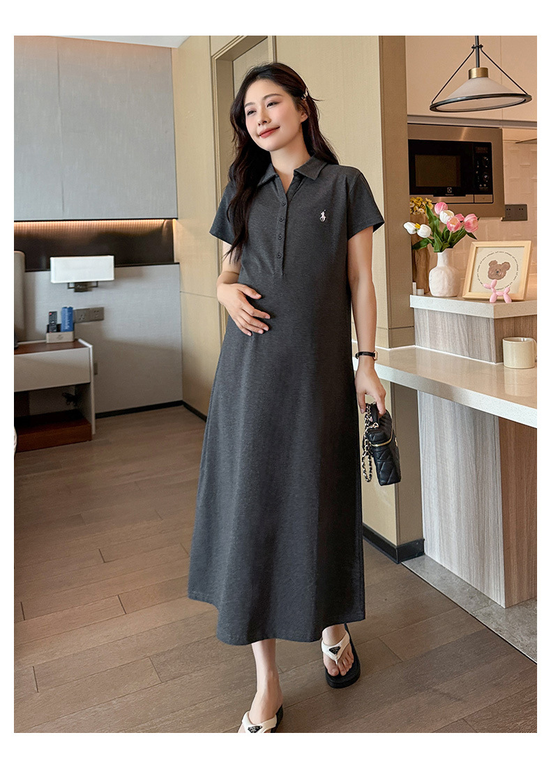 マタニティドレス夏ポロラペルファッションカジュアル大きいサイズロング年齢軽減夏薄いマタニティドレススカート