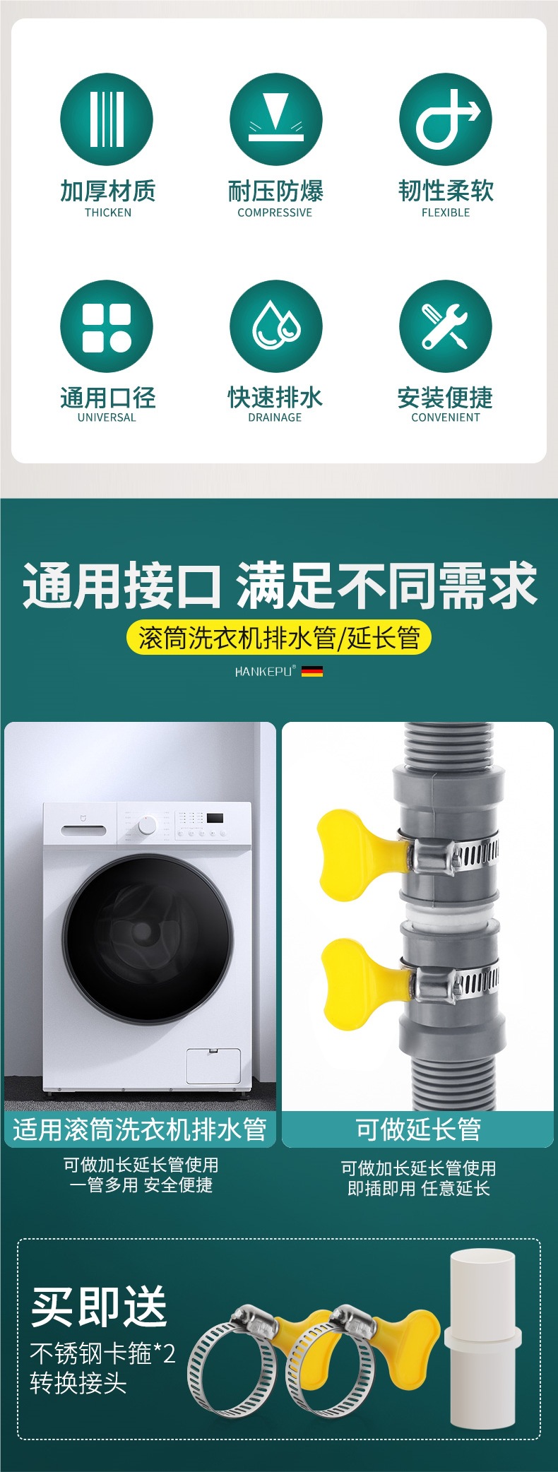 全自動ドラム洗濯機食器洗い機排水管延長延長ホース厚みのあるユニバーサル下水管