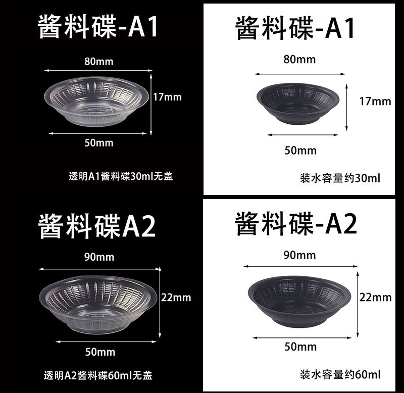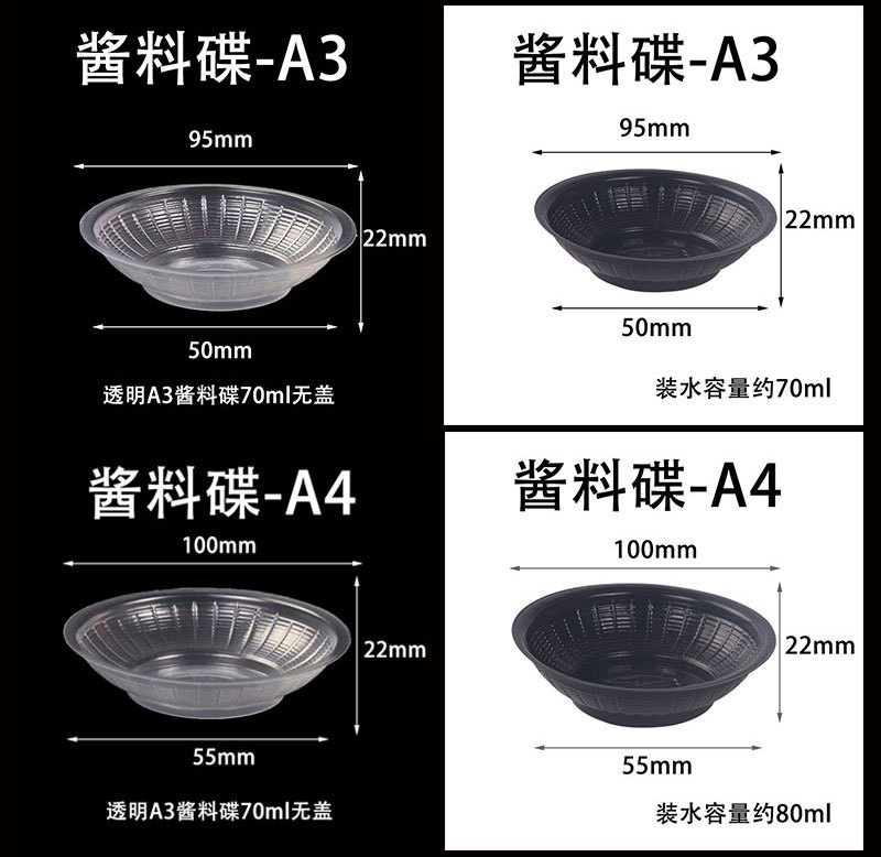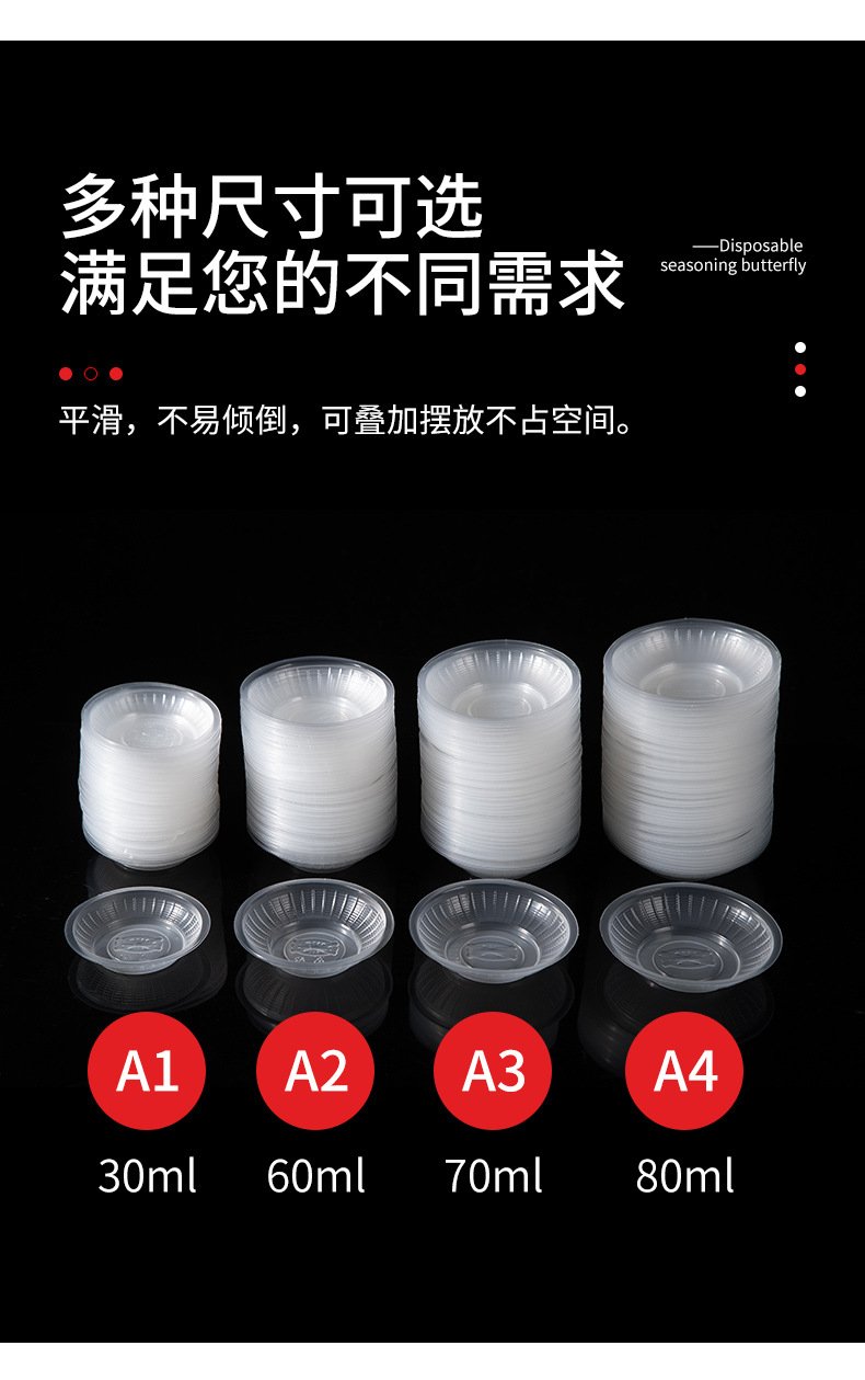 使い捨て味皿、ディップソース小皿、丸型透明醤油皿、調味料チリビネガーディッシュ、プラスチック小鉢、耐熱