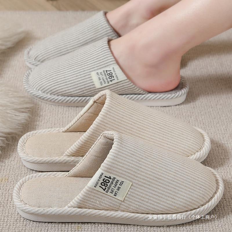 リネン生地の綿スリッパ、家庭用オフィス用綿と麻のスリッパ、吸汗性つま先キャップ、男性用、春、秋、冬、オールシーズン