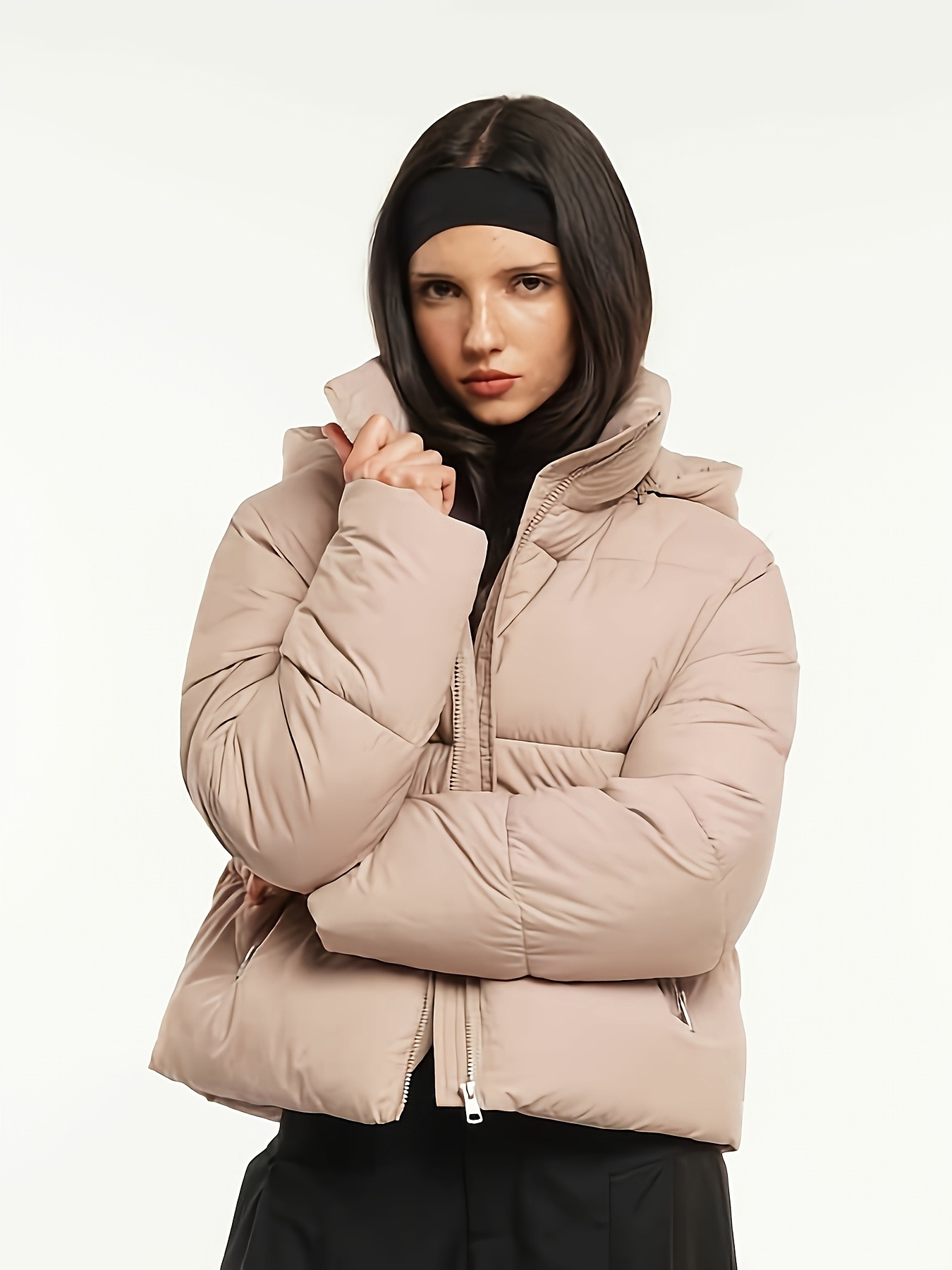 レディース フィット 取り外し可能 フード付き パファー ジャケット 防風クロスボーダー