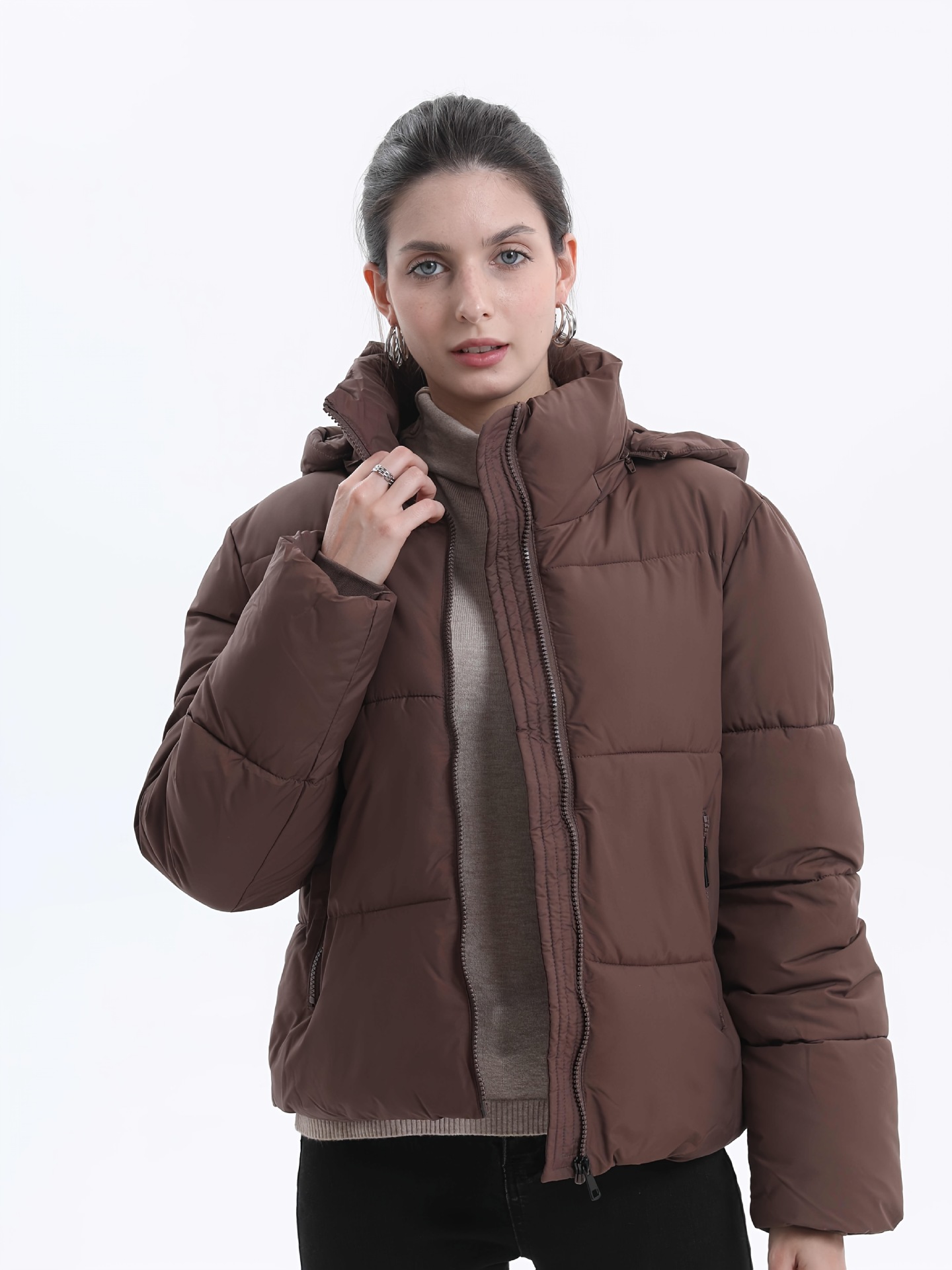 S 827 Women's Fitted Detachable Hooded Puffer Jacket