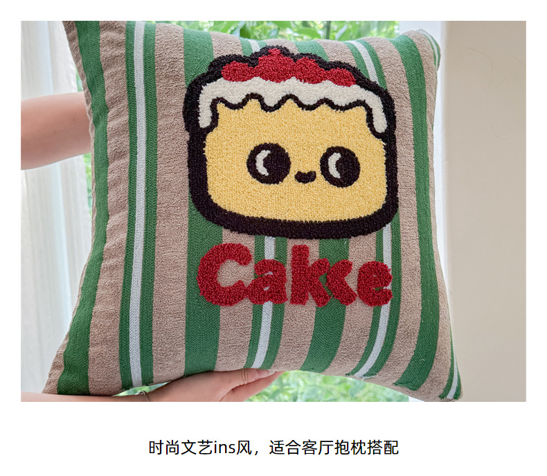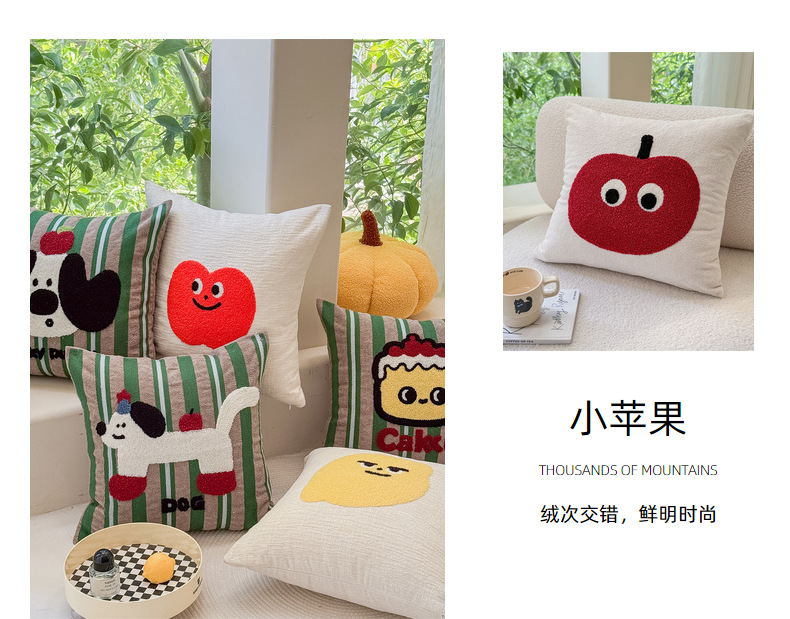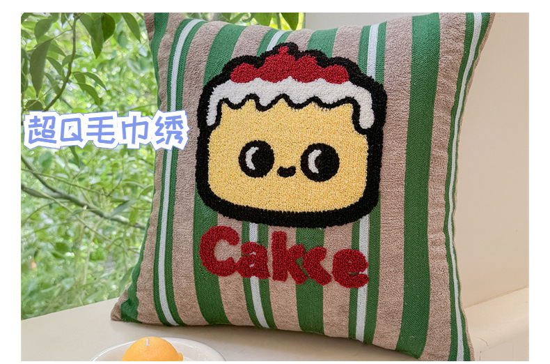 ドーパミンストライプアップルタオル刺繍入りクラウドベルベットリビングルームベッド背もたれソファクッション枕漫画刺繍